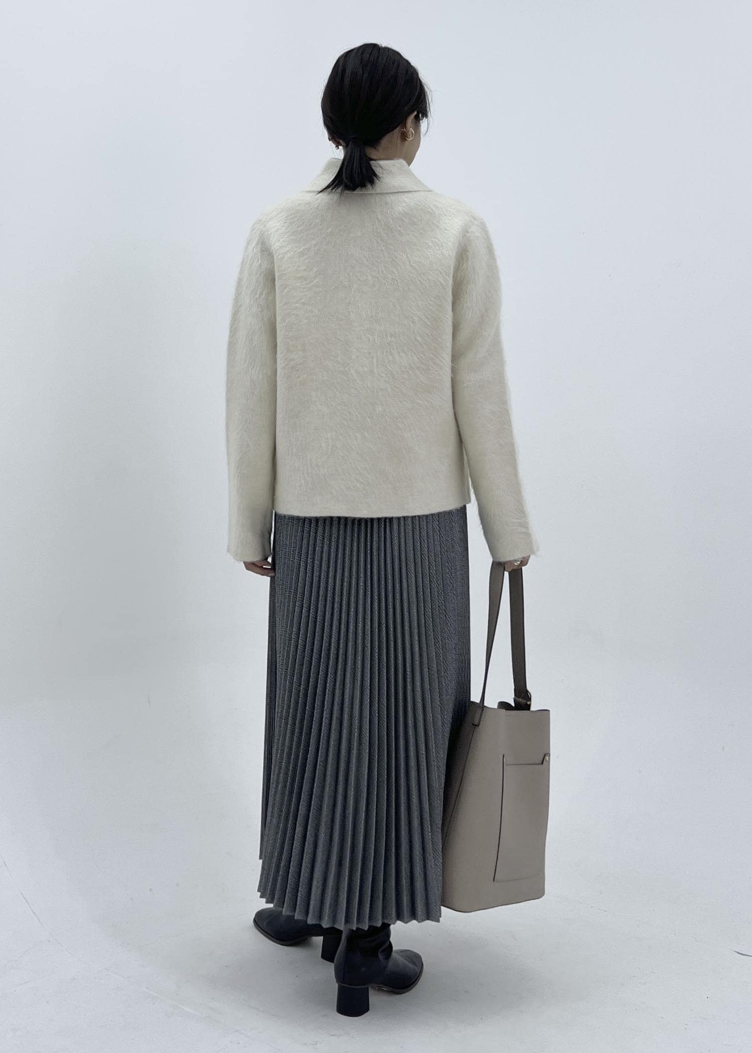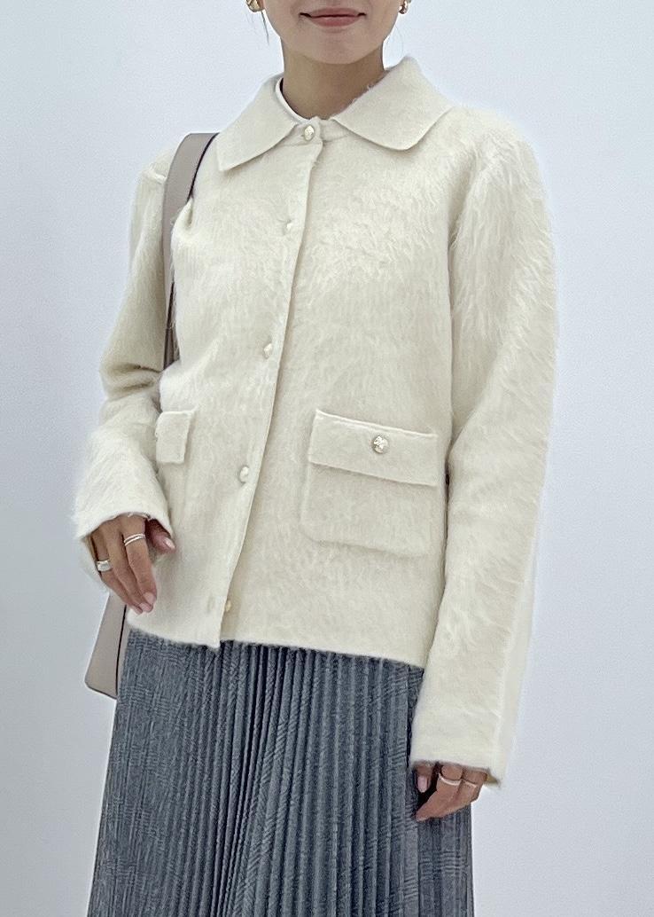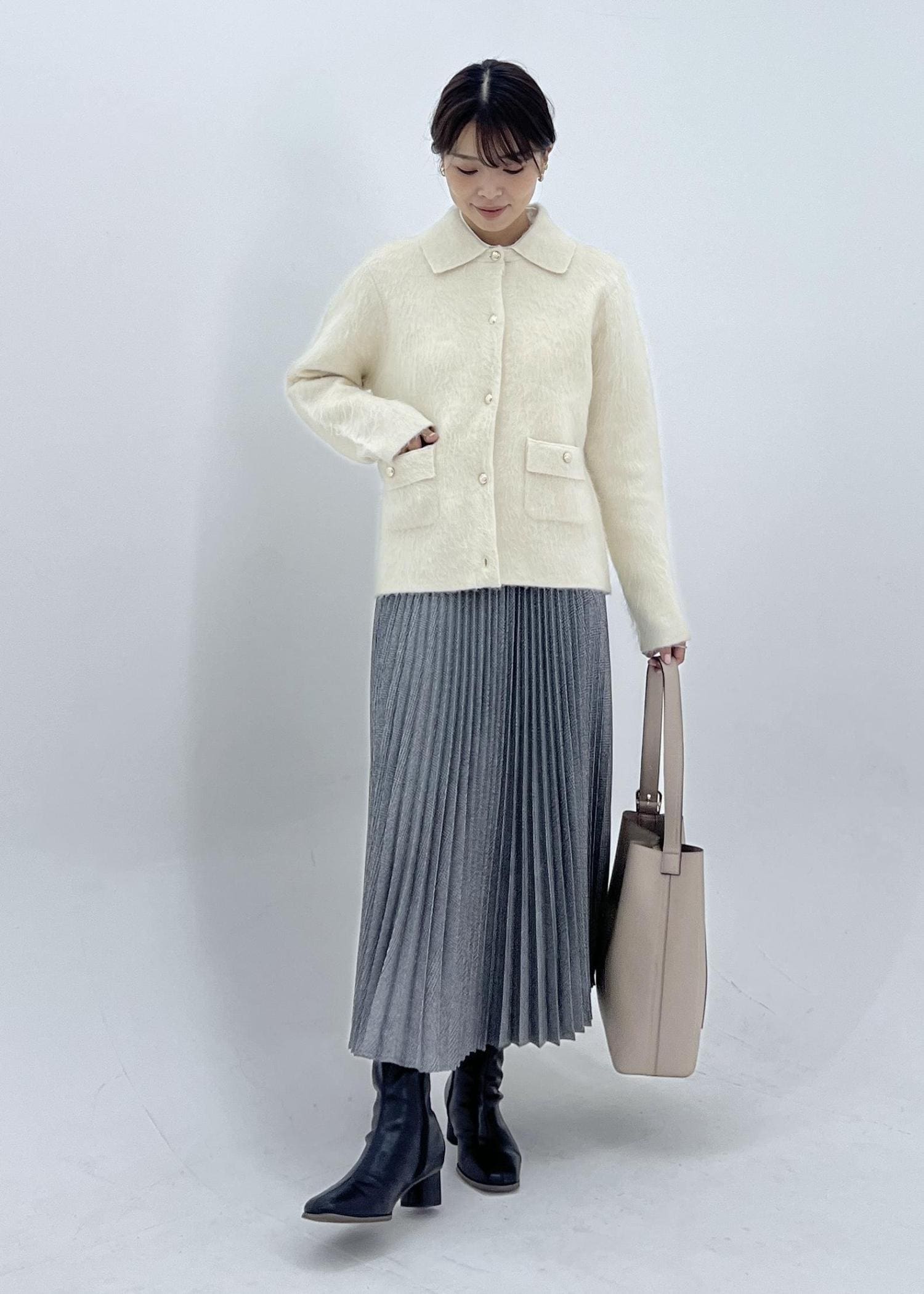 柔らかく暖かみのある起毛ニットのカーディガンは、スカートを合わせて綺麗めカジュアルなコーデも◎。