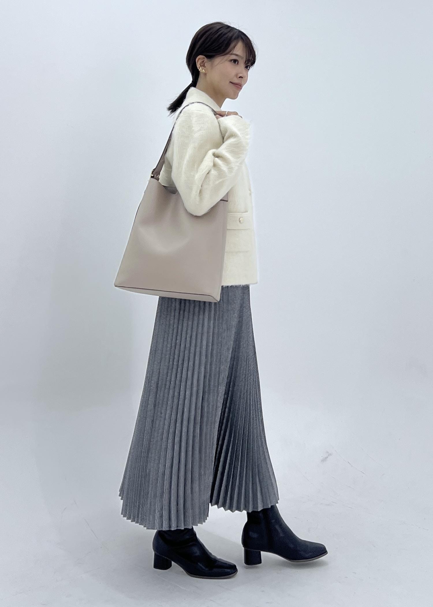 小物はシンプルなアイテムで、シックな雰囲気のあるスタイリングにしました。