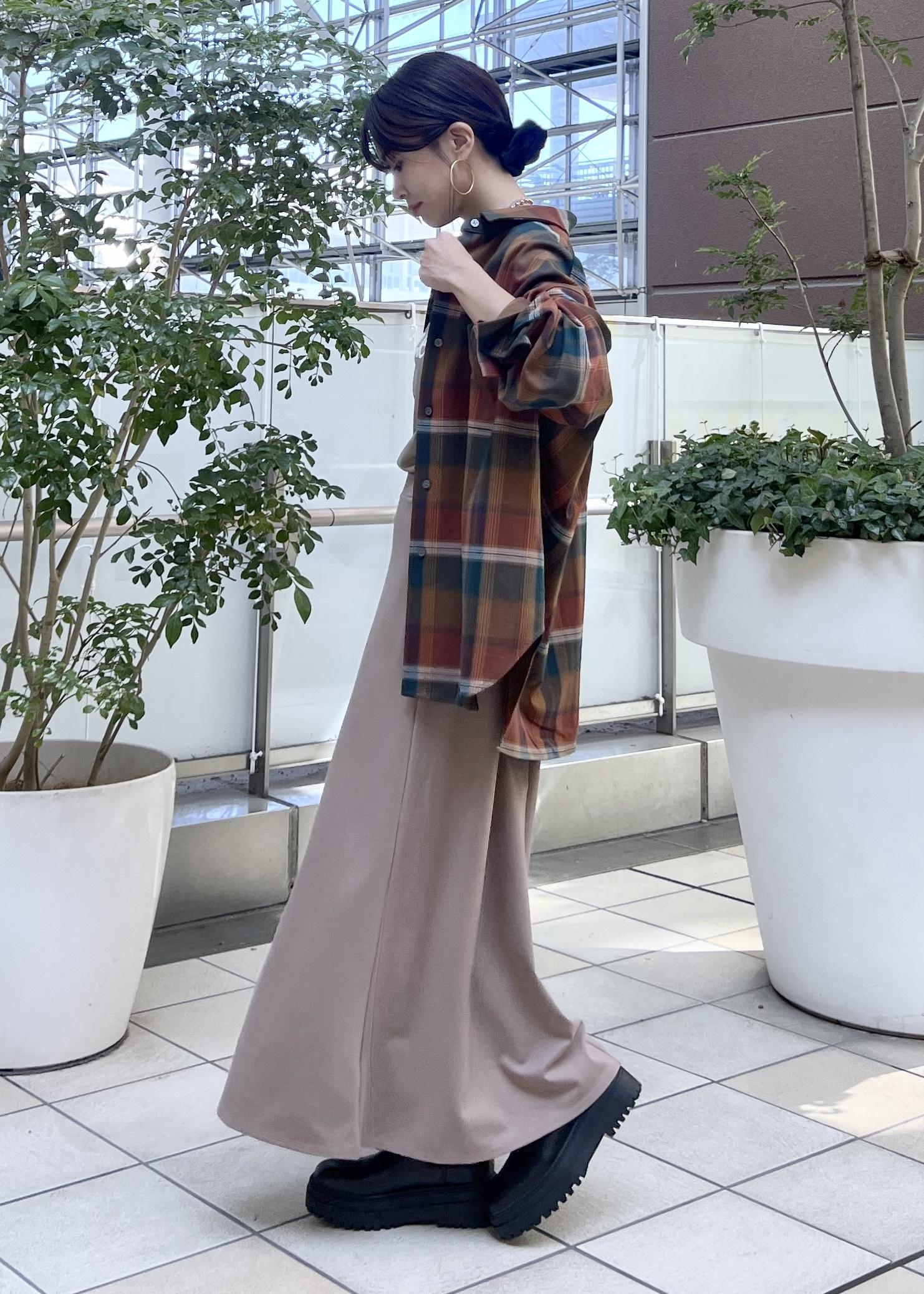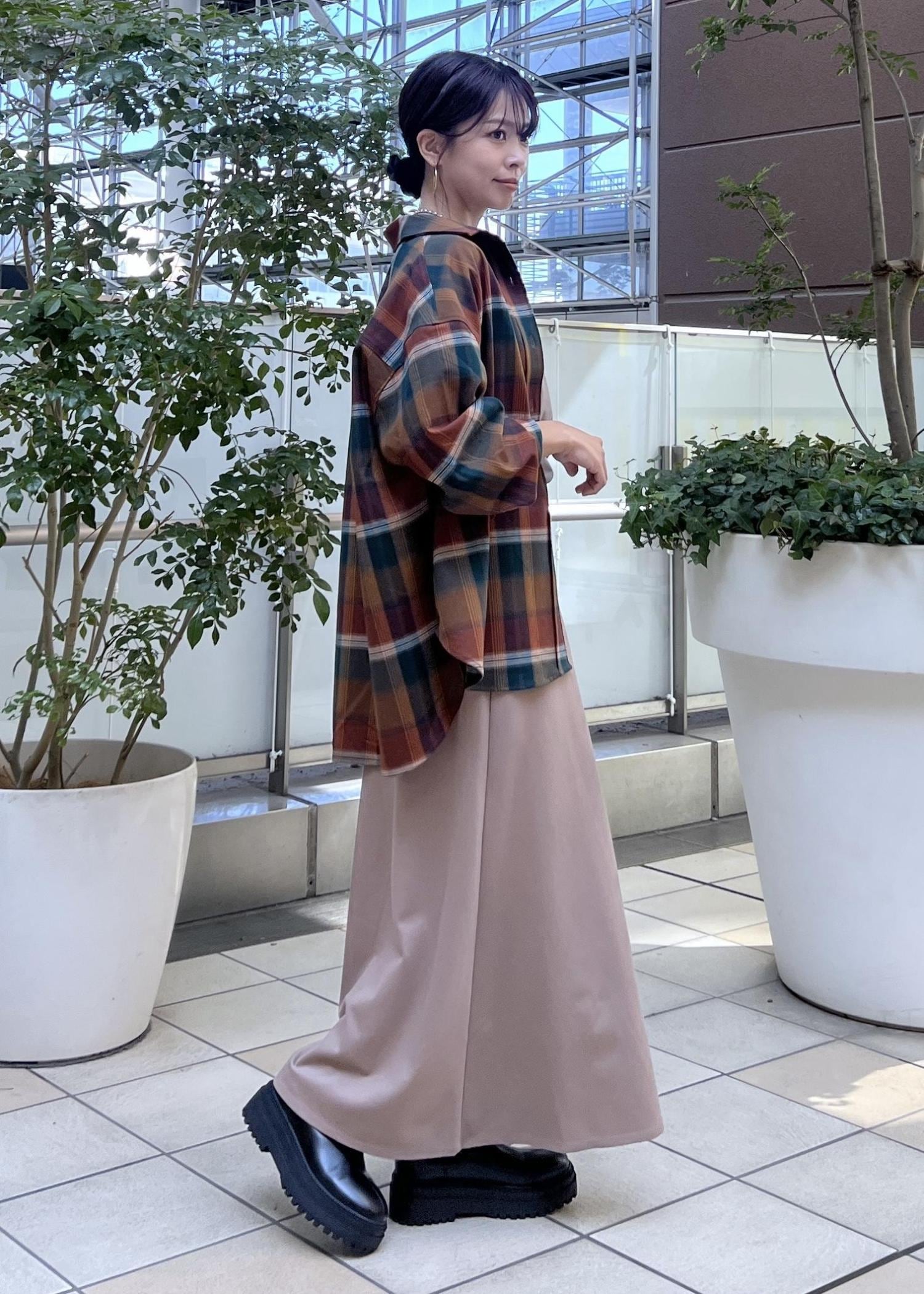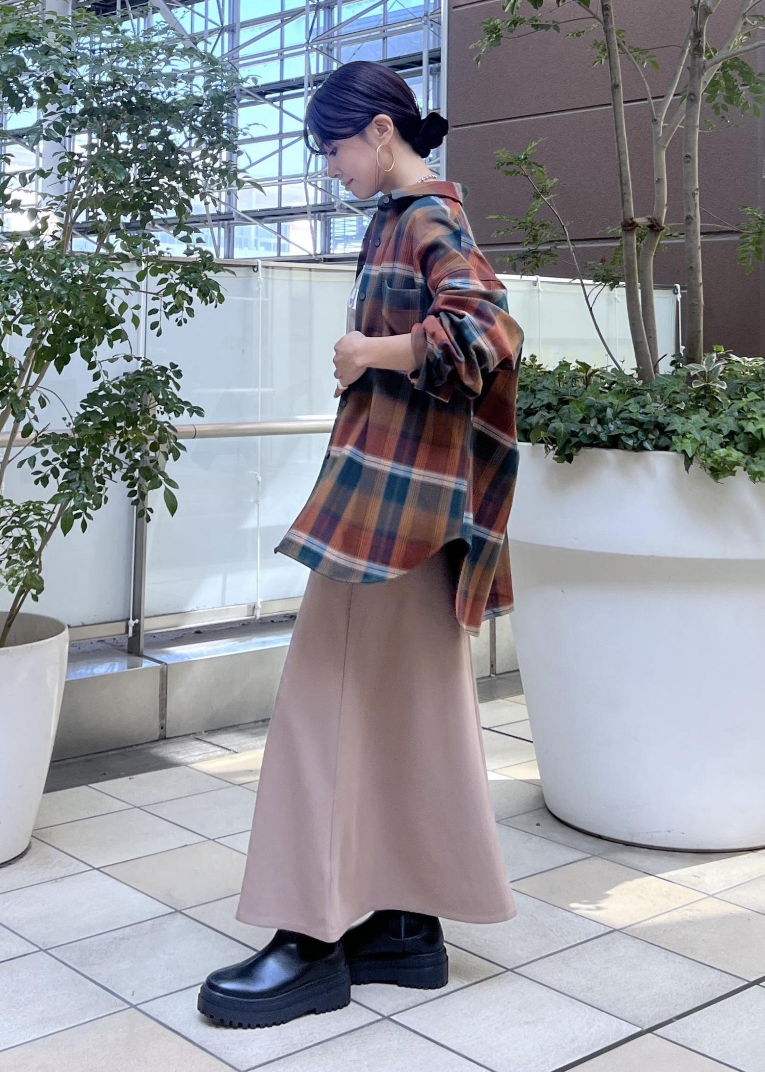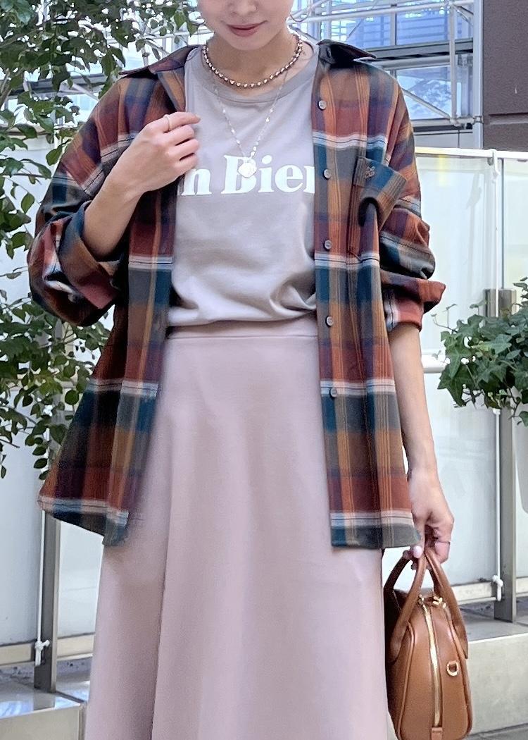 秋冬らしいチェックシャツは程よく厚みがあるので秋の羽織にもおすすめ。
