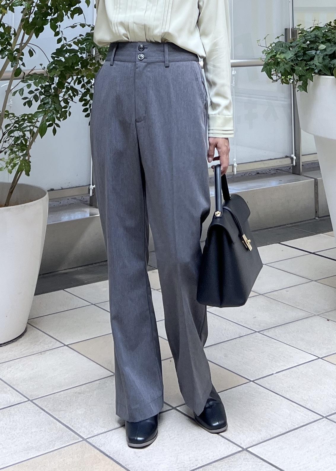 脚のラインを拾わずスッキリ感のあるフレアシルエット。