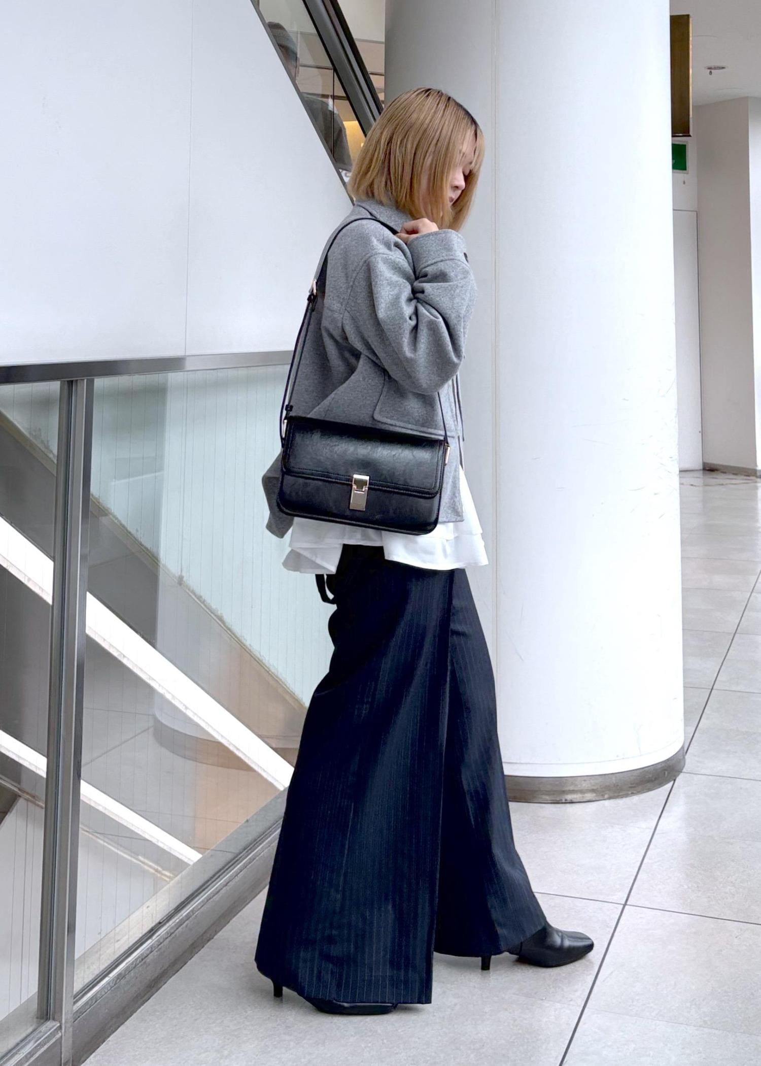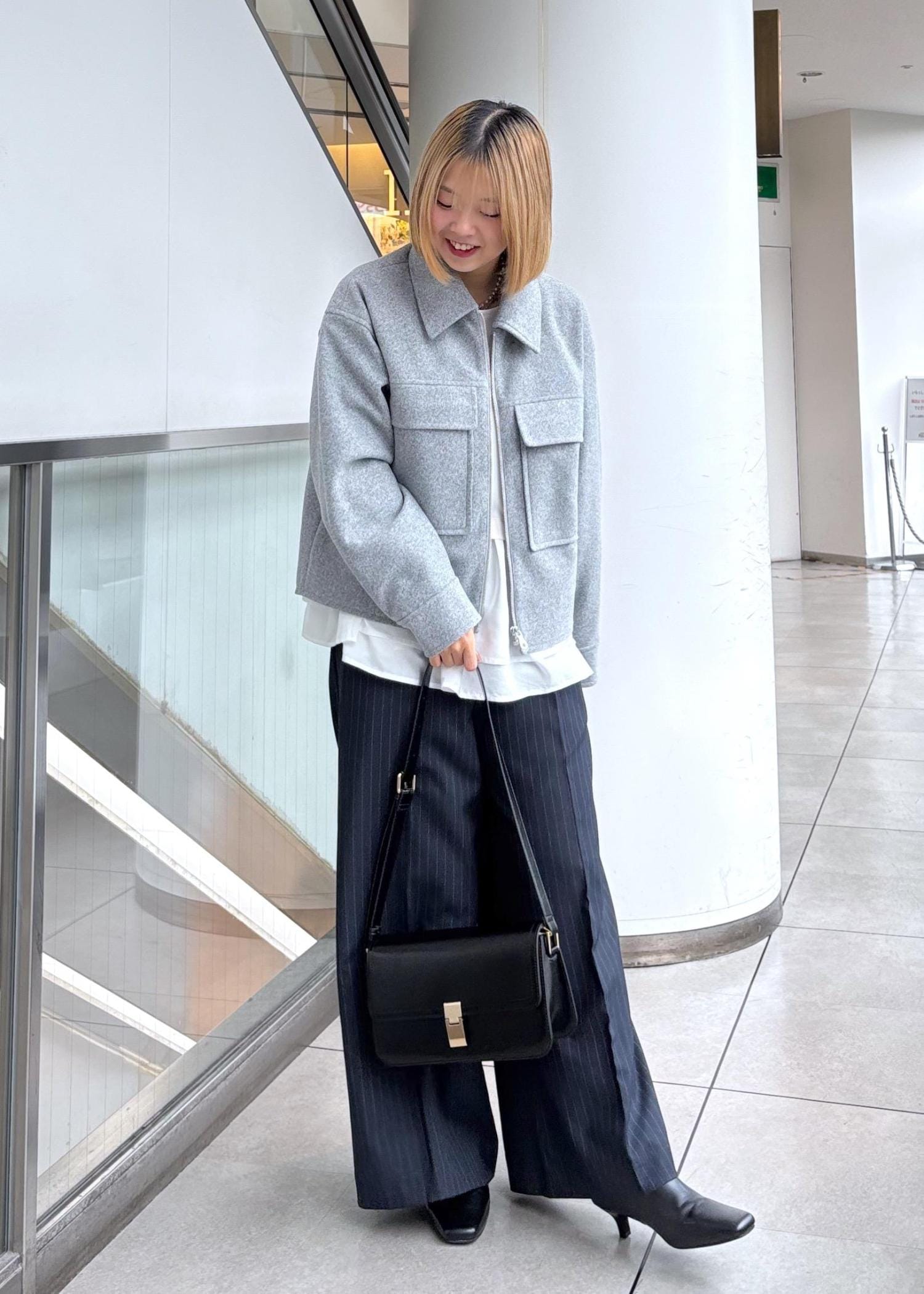 ジップコートが長すぎない丈感なので、ペプラム型のトップスとも相性抜群でした◎