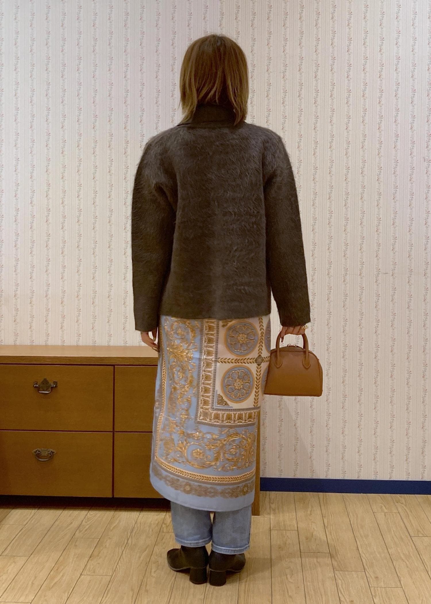 ブラウン×ブルーの組み合わせで今年っぽいトレンド感をプラスしたのがポイントです。