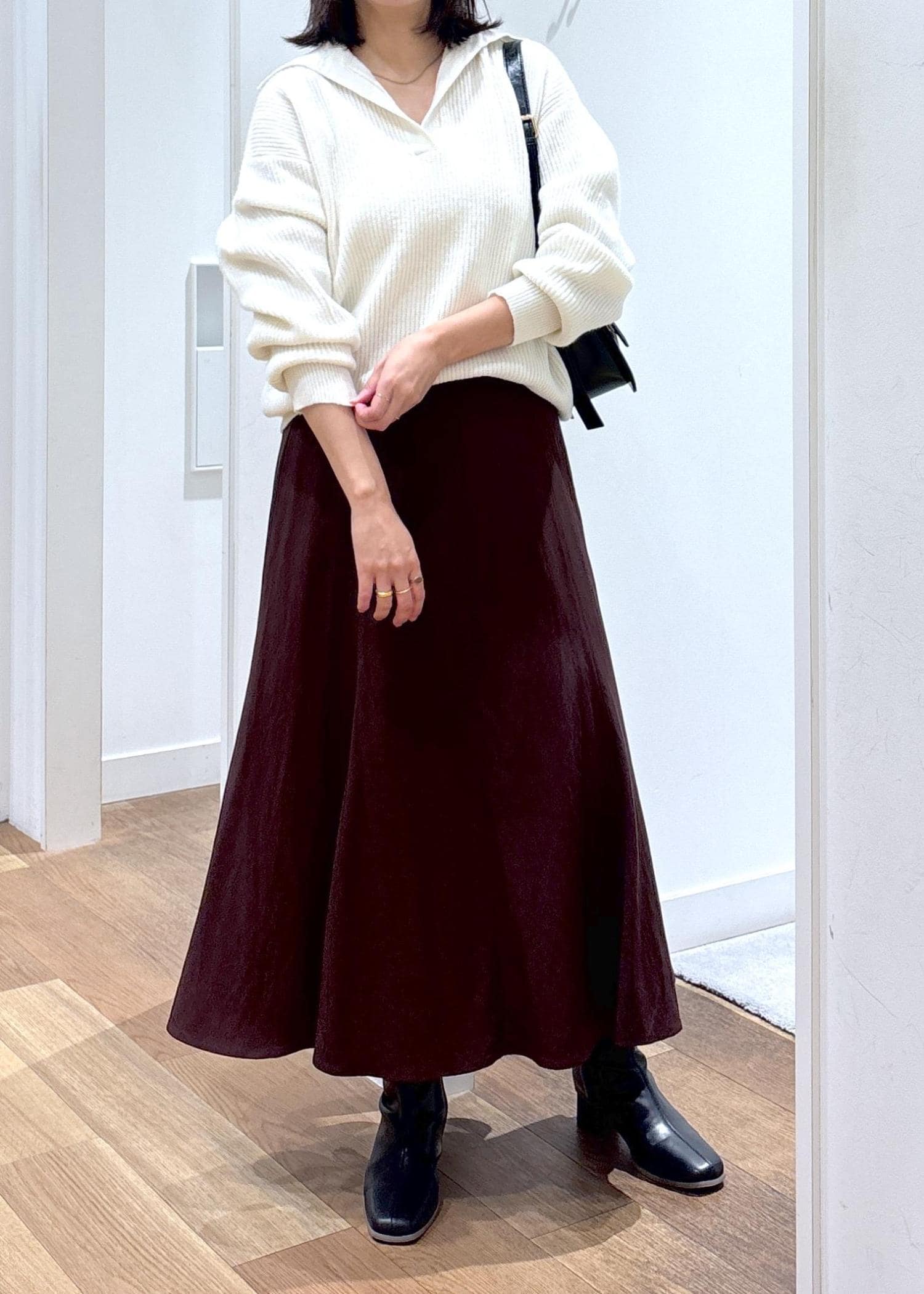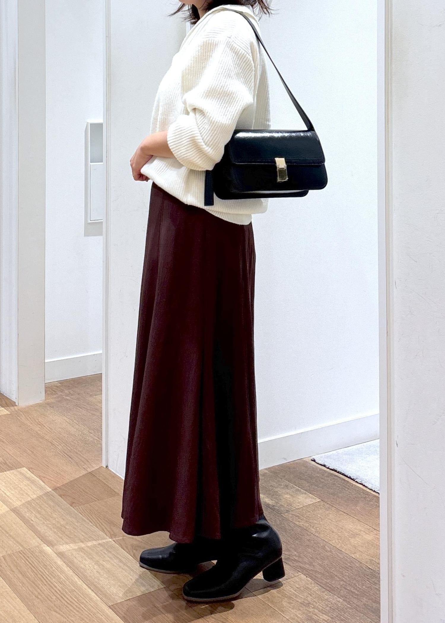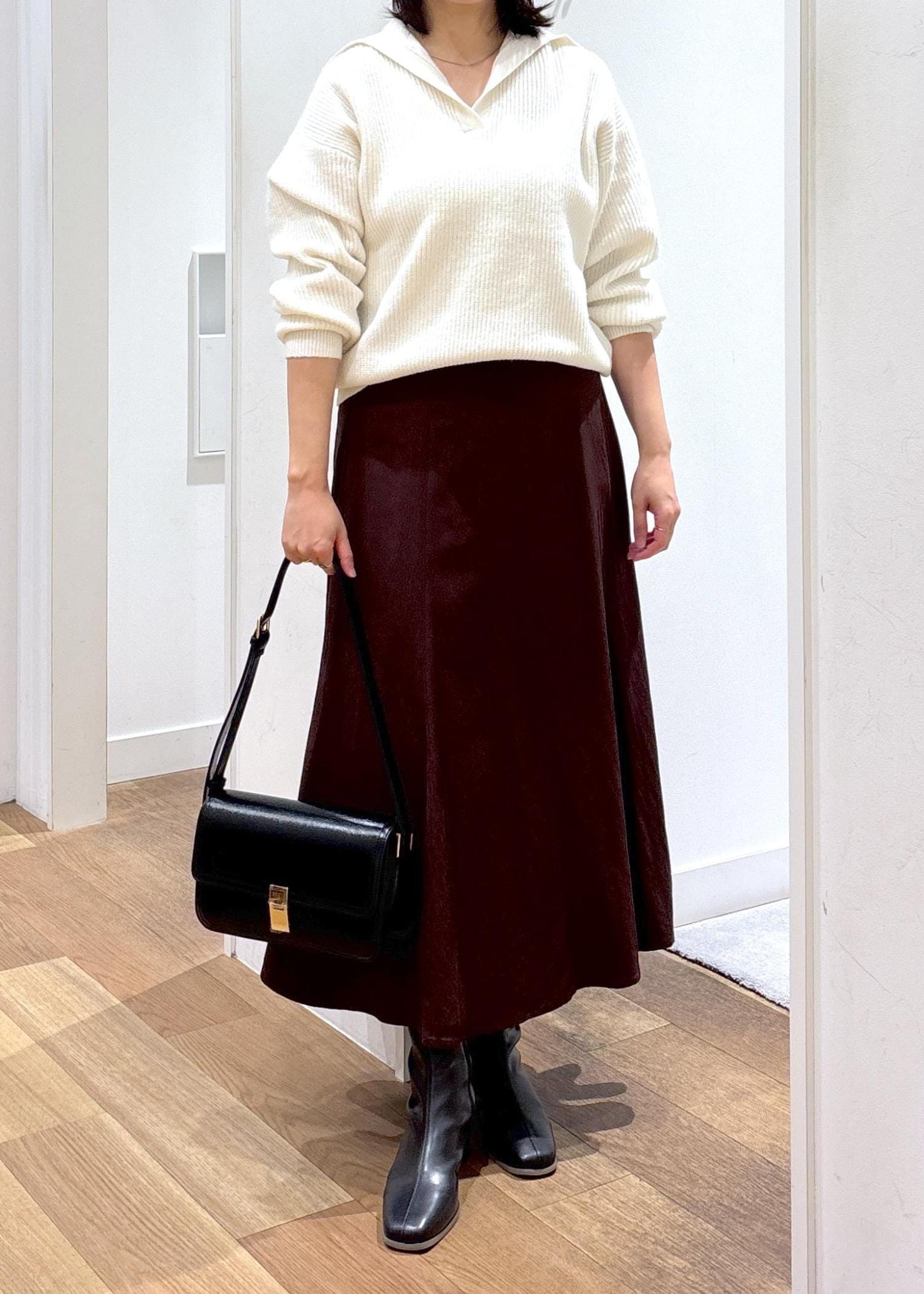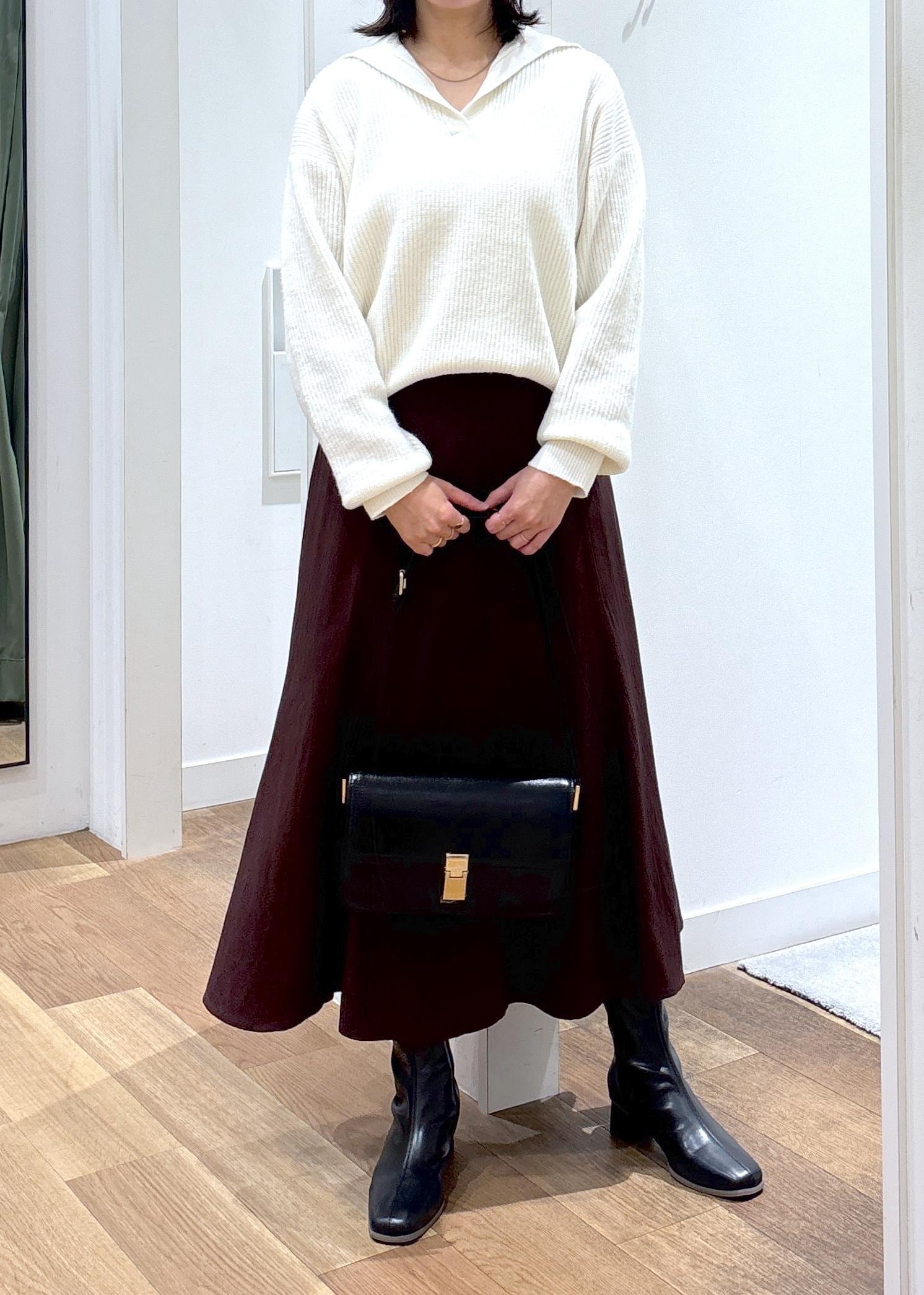揺れるシルエットが柔らかな印象のスカートと合わせました!