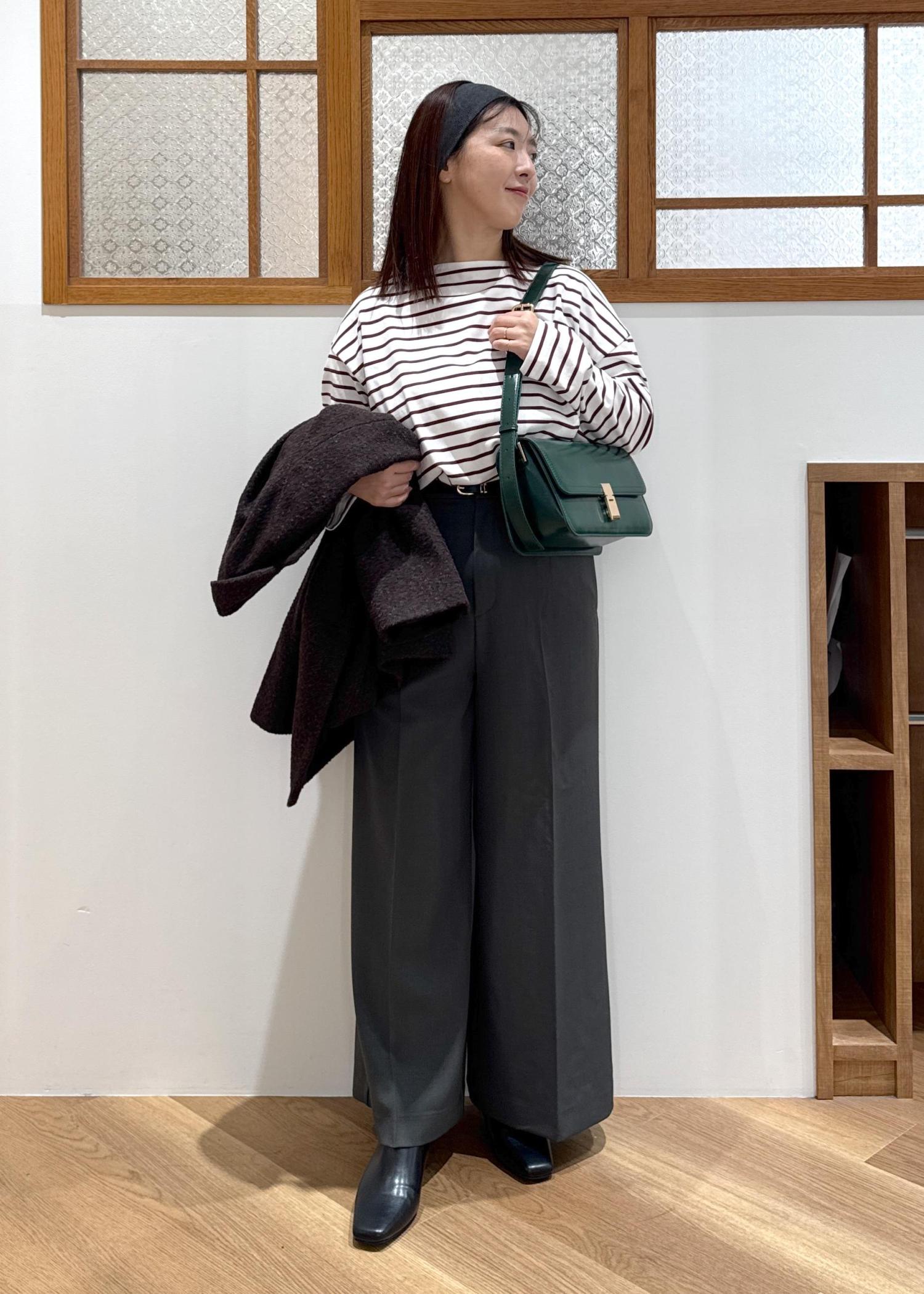 新鮮なブラウンボーダートップスで少し抜け感を♡