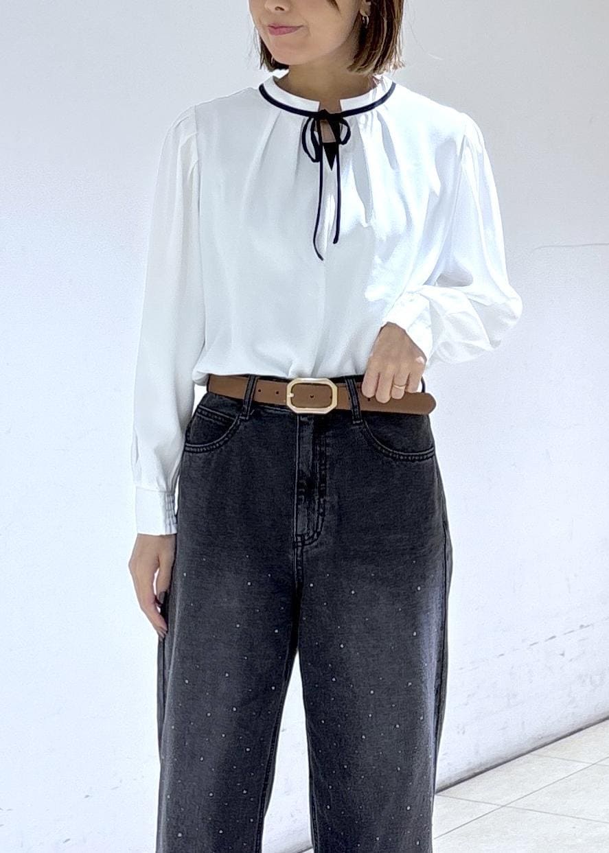 ROPÉ PICNIC【前後2WAY】【WEB限定カラー】配色リボンブラウス/通勤対応ホワイト系 / M¥3,993レビューとろみ感のある柔らかな履き心地です。