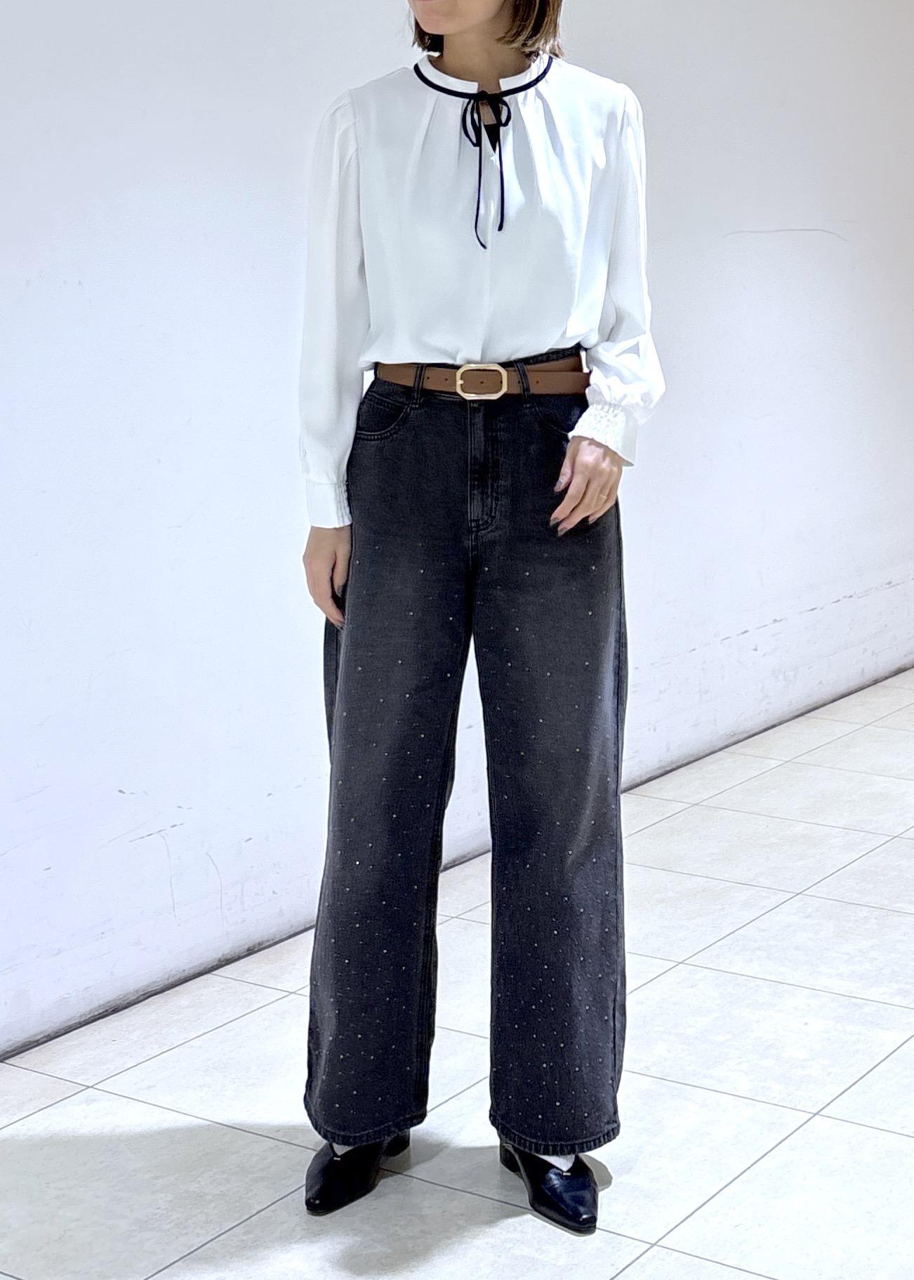 コーディネートに馴染んでくれるキラキラ感がポイントのデニムパンツです。 -