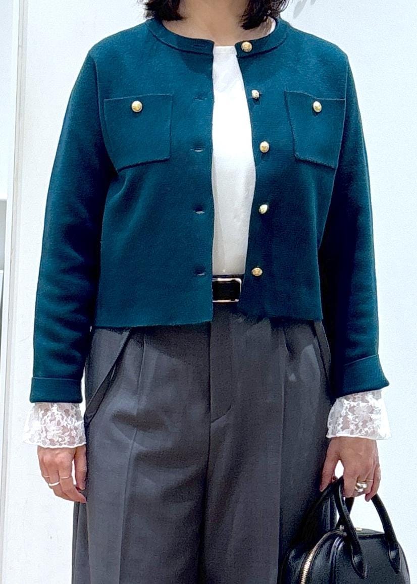 ROPÉ PICNIC【洗濯機OK】ミラノリブニットカーディガングリーン / M¥4,994レビューしっかりとした素材で、ポケットやボタンのデザインからもジャケットのような雰囲気で着用できるカーディガンです。