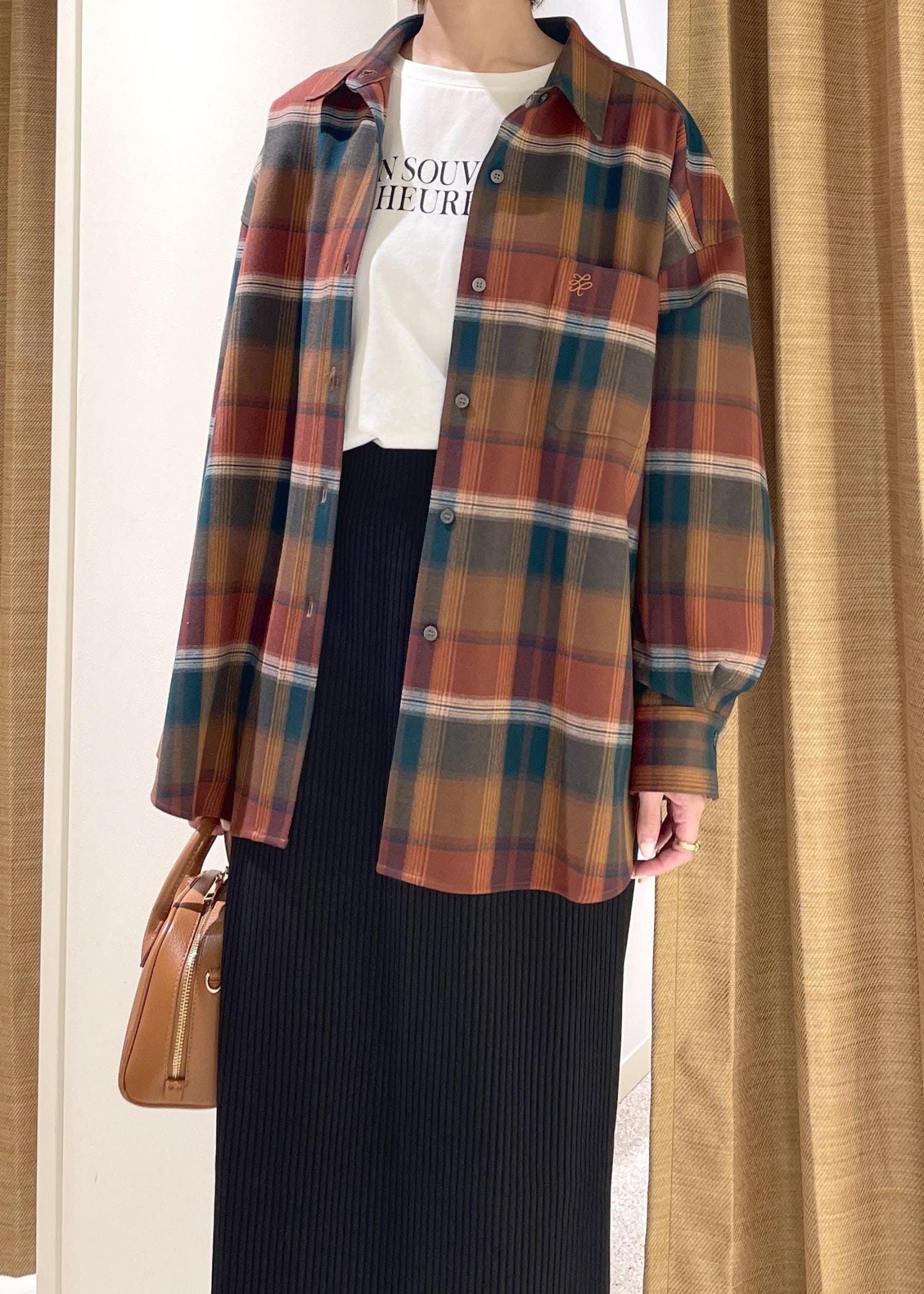 秋らしい配色がポイントのチェックシャツは生地感がしっかりとしているので今時期の羽織としても大活躍してくれます◎