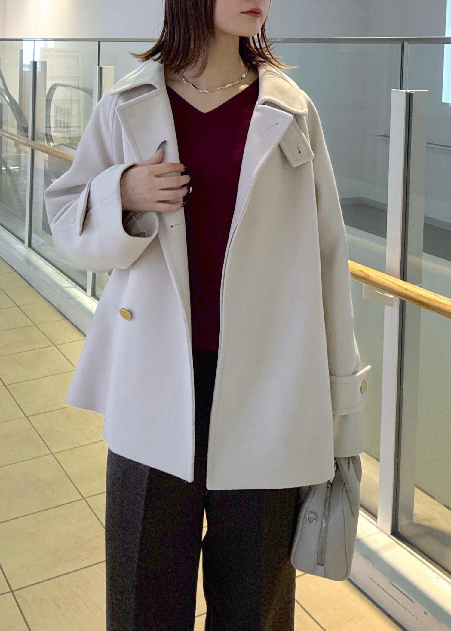 ROPÉ PICNICジャージーメルトンシリーズ 金ボタンミドル丈コート/リンクコーデベージュ / F¥10,989レビュー金ボタンがアクセントのアウター。