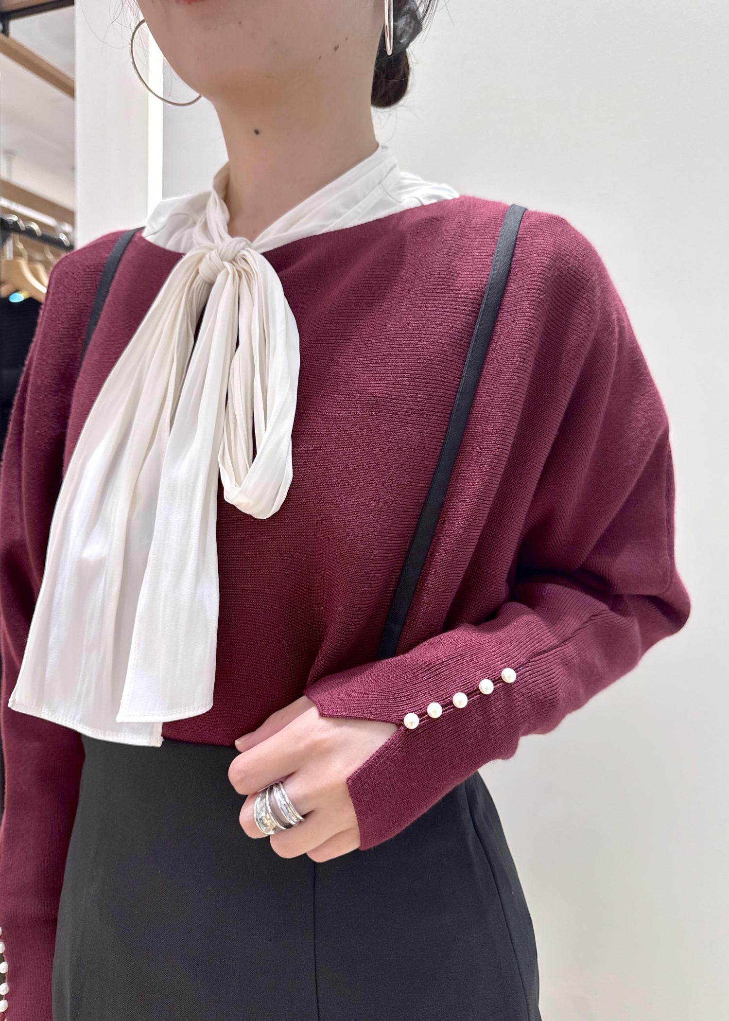 ROPÉ PICNICマシュマロ袖パールドルマン/イージーケア・リンクコーデワイン / M¥4,391レビュー袖パールがポイントのニットです。