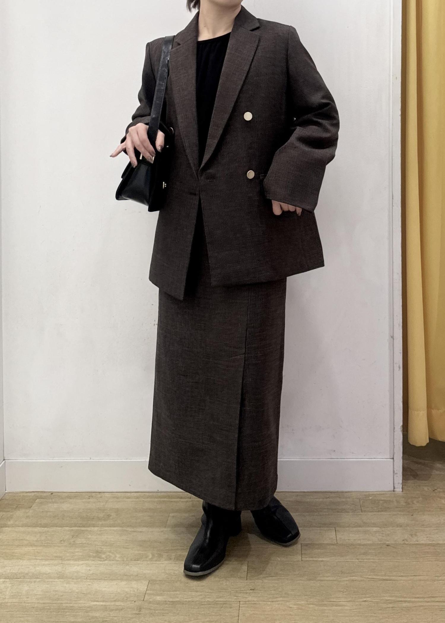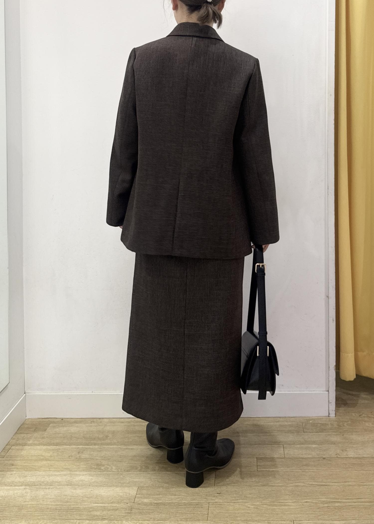 ROPÉ PICNICスリートーンツイードスカート/セットアップ対応ダークブラウン / S¥4,994レビューSサイズはキレイなアイラインシルエットで、ヒップが少しフィット感のあるジャストサイズ。