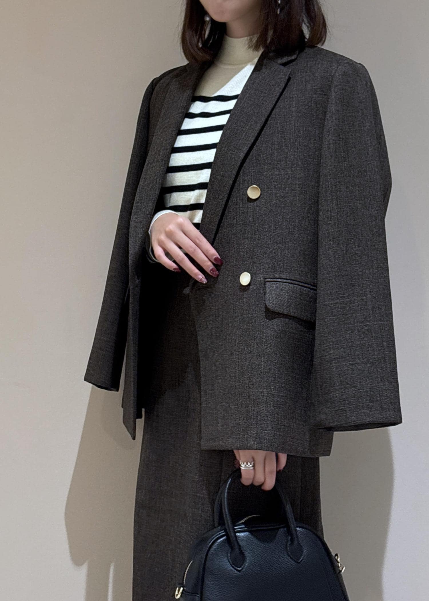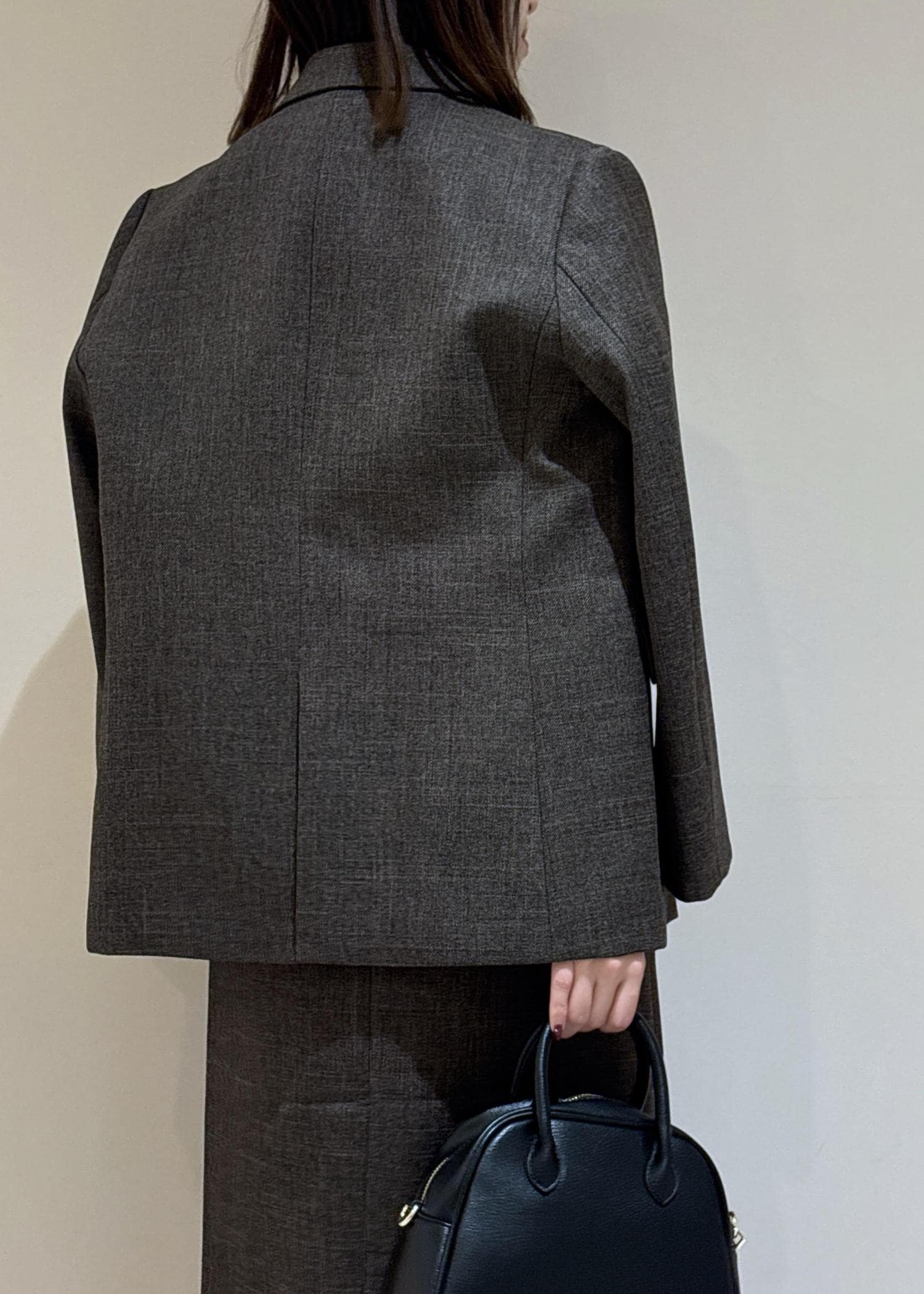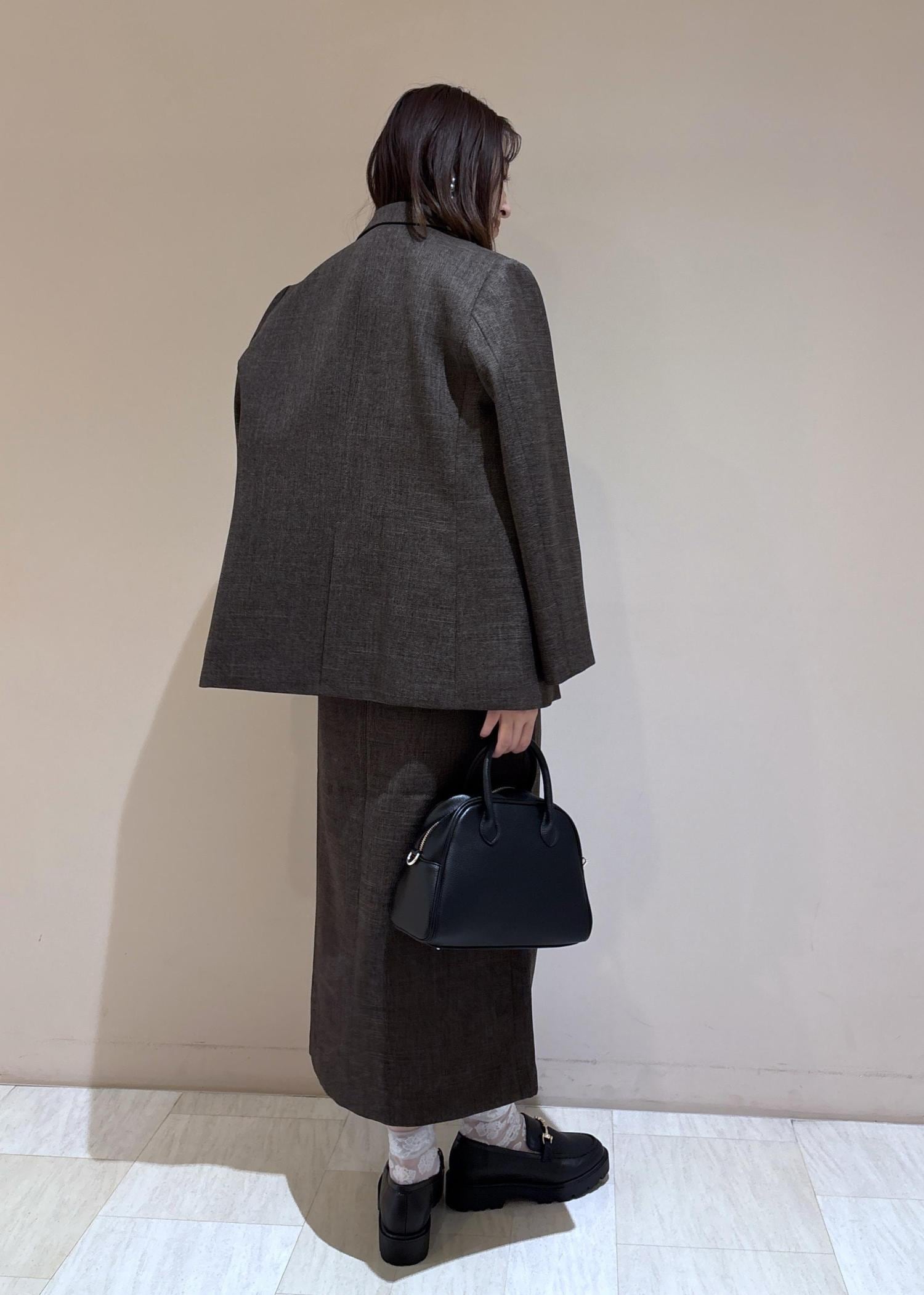 ジャケットとスカートは同素材のセットアップ。