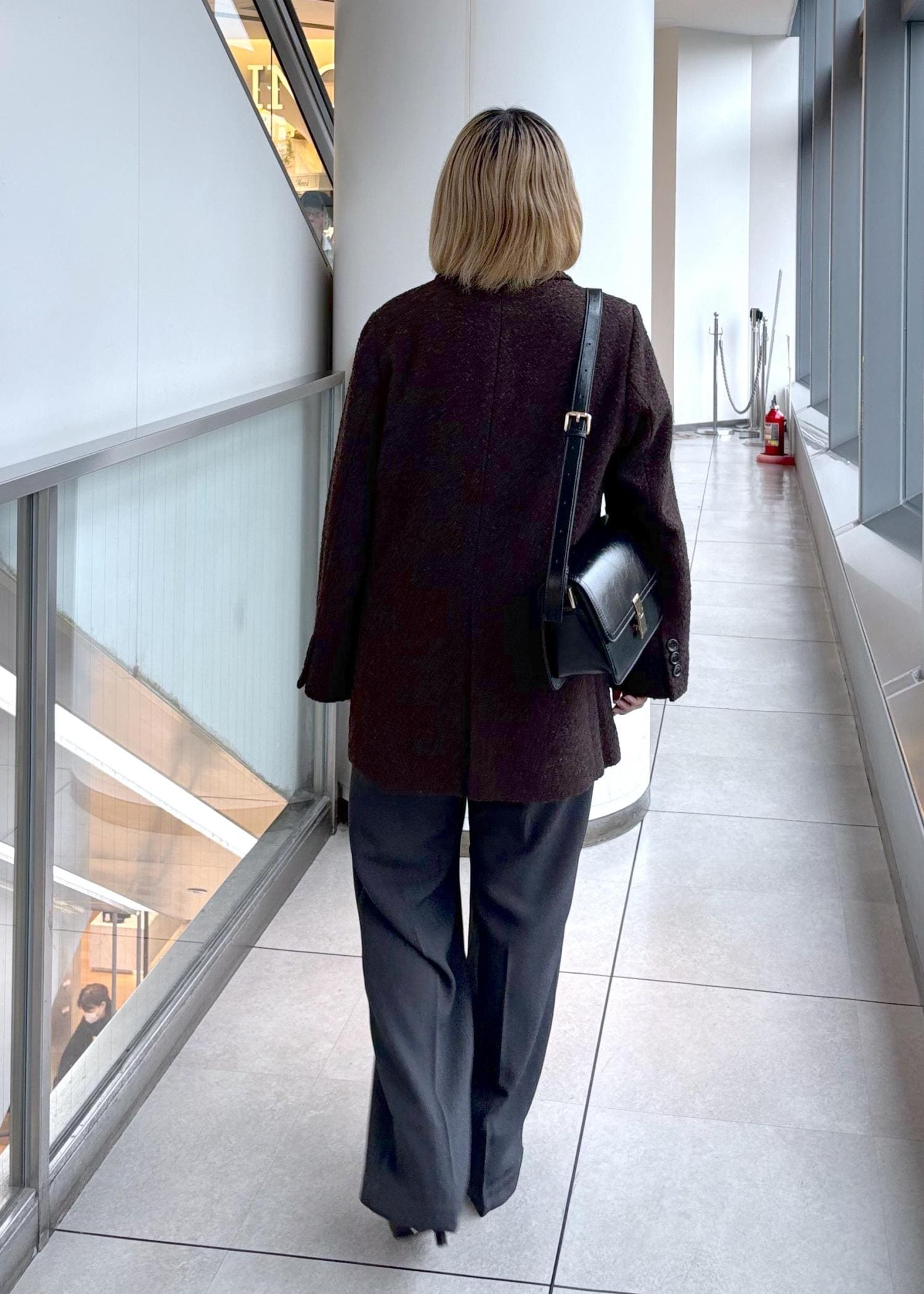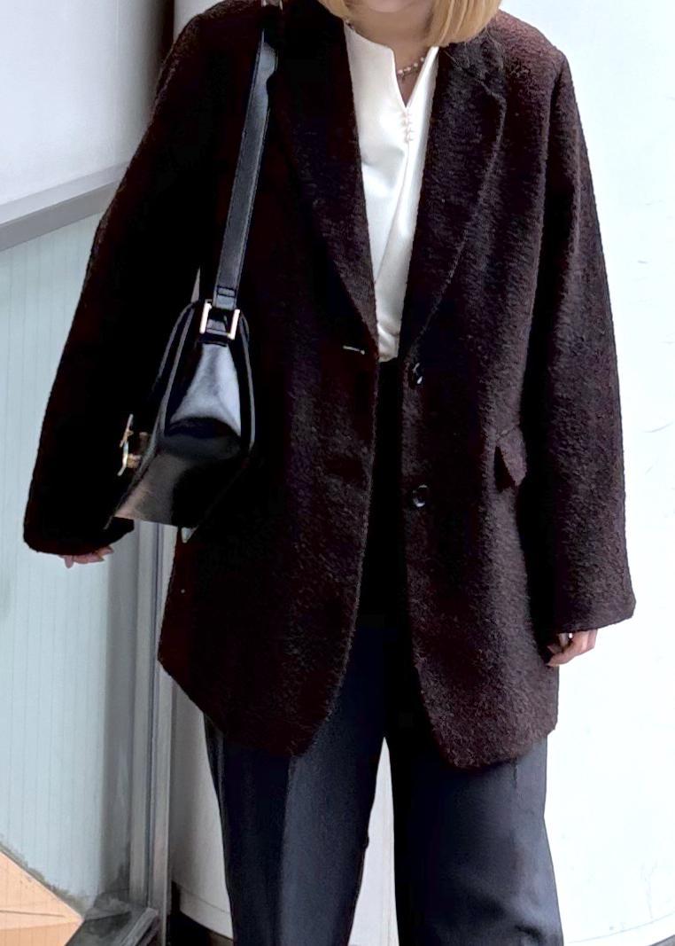 ネップツイードのジャケットは、肉厚で表面が凸凹した生地感が可愛いです☺︎