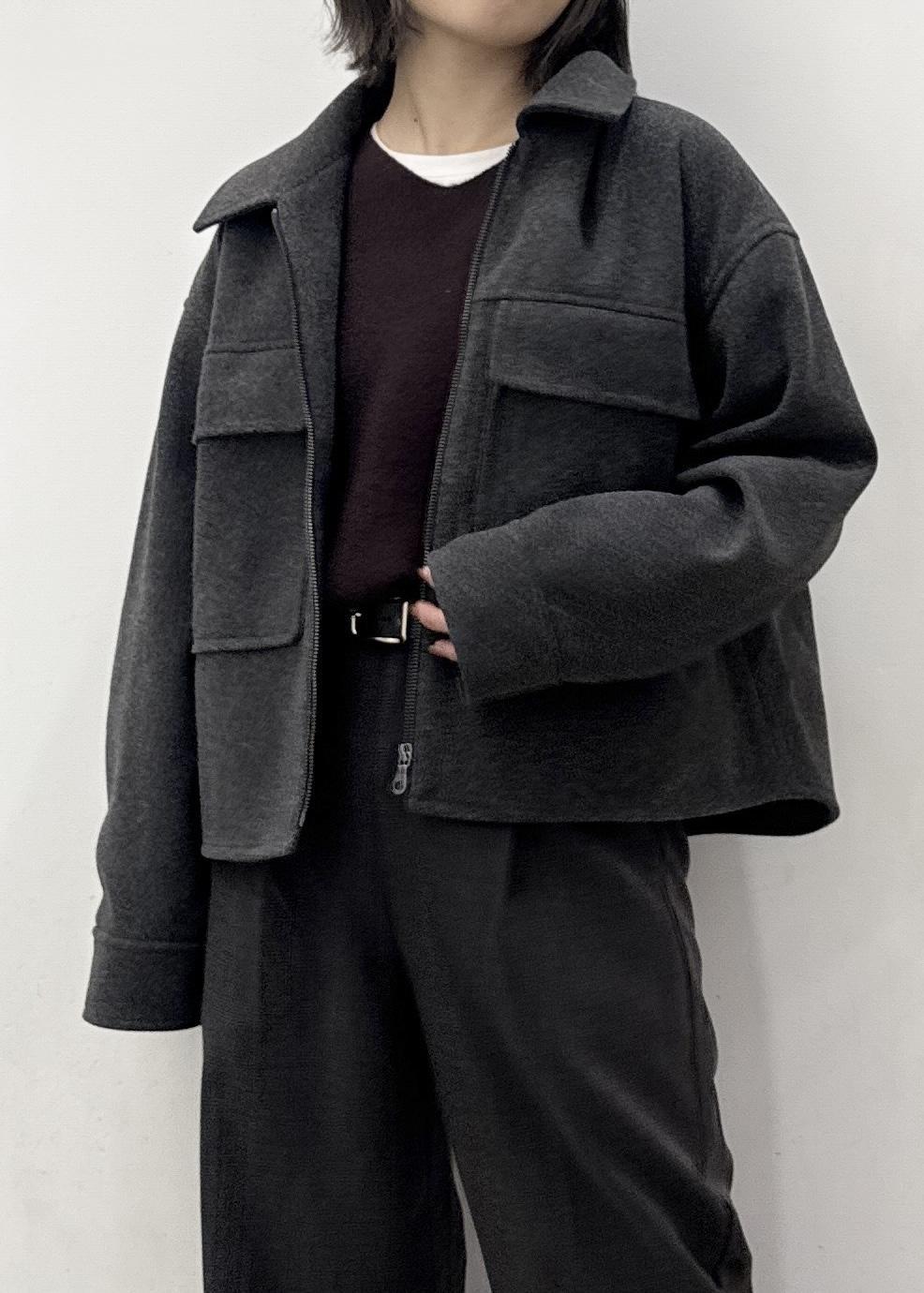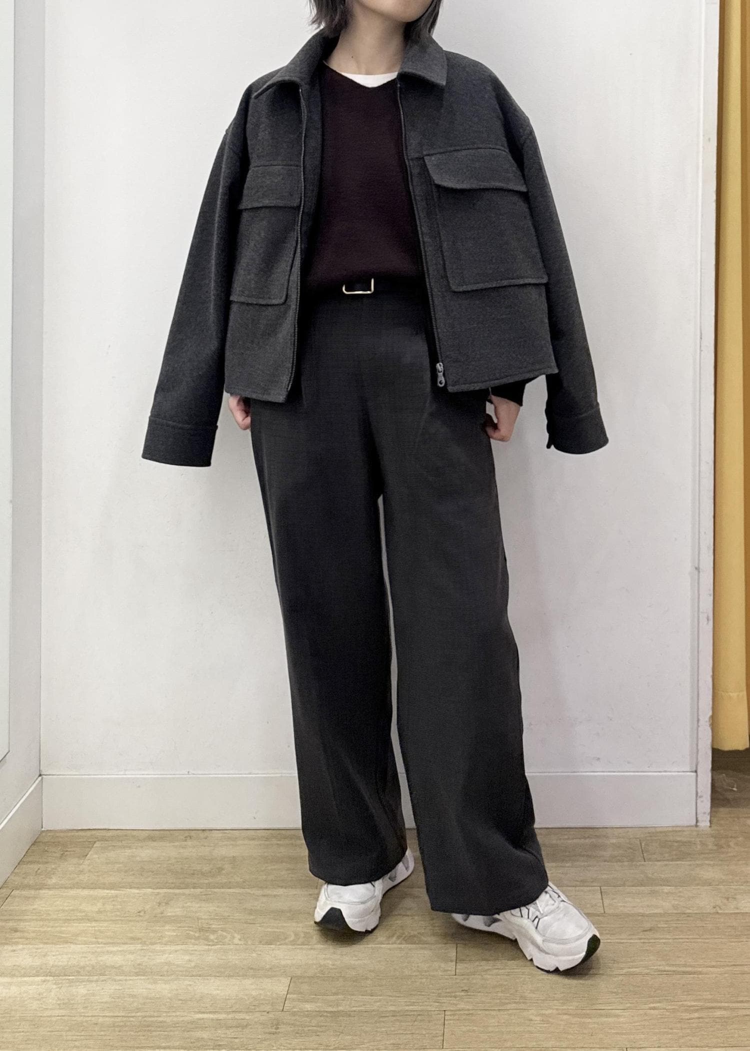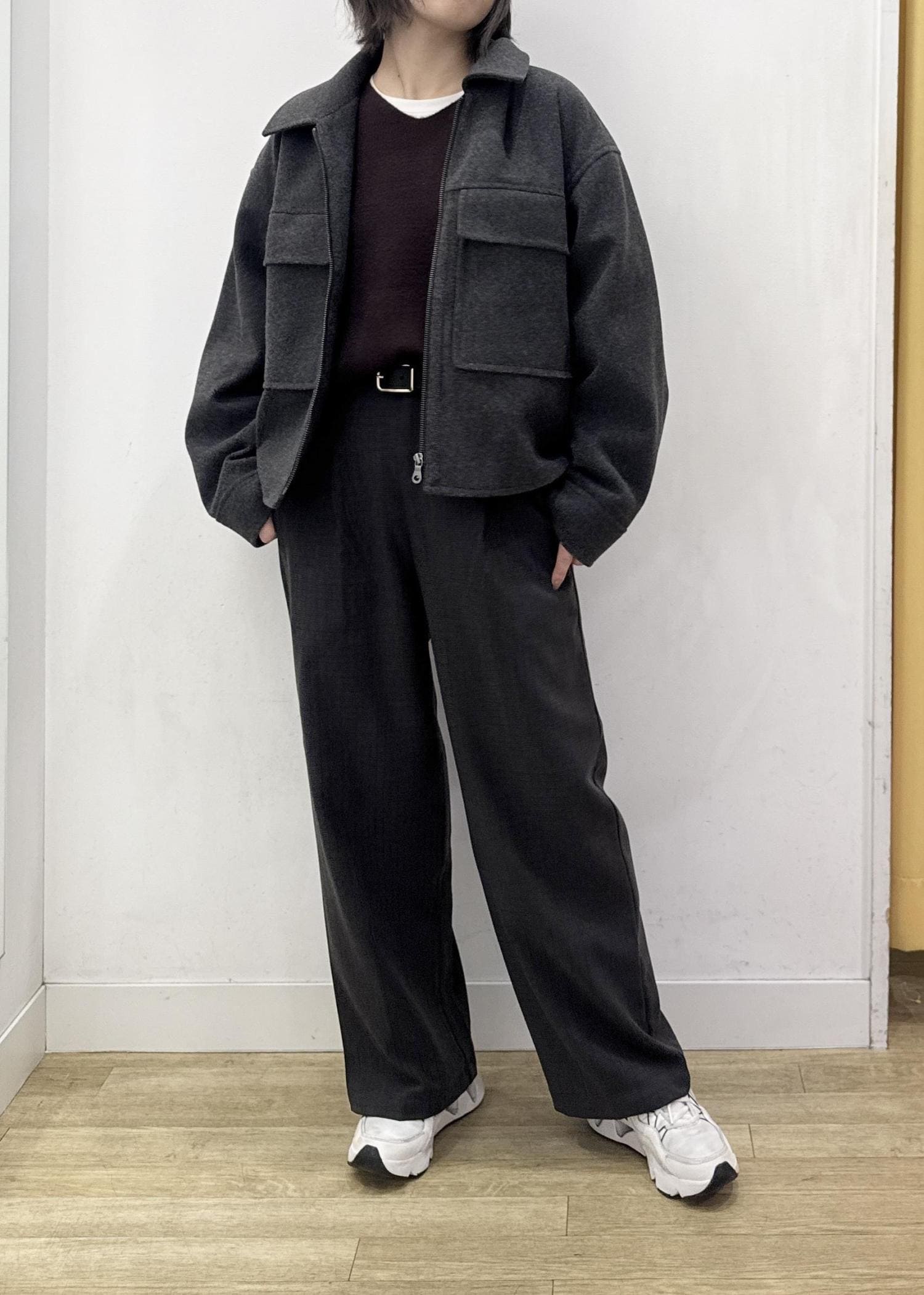ROPÉ PICNICジャージーメルトンシリーズ ポケット付きジップブルゾン/リンクコーデチャコール / F¥9,999レビュー身幅、袖まわりもゆったりとしたサイズ感。
