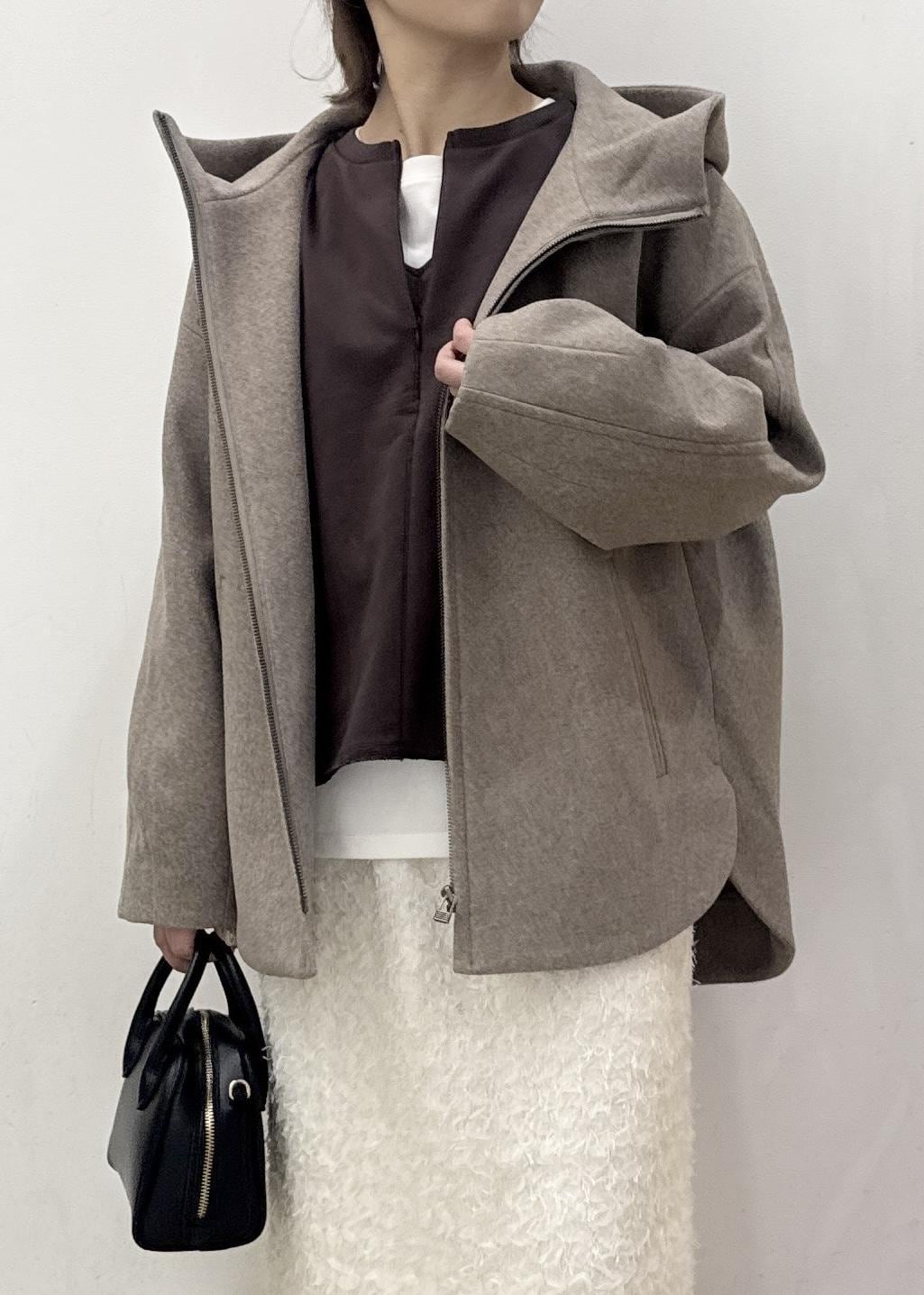 ROPÉ PICNICジャージーメルトンシリーズ ジップアップフーデッドコート/無地・チェック/リンクコーデダークブラウン / F¥10,989レビューゆったりオーバーなサイズ感で袖周りもゆとりがあるので、厚手のトップスやボリュームのあるデザイントップスでも安心!