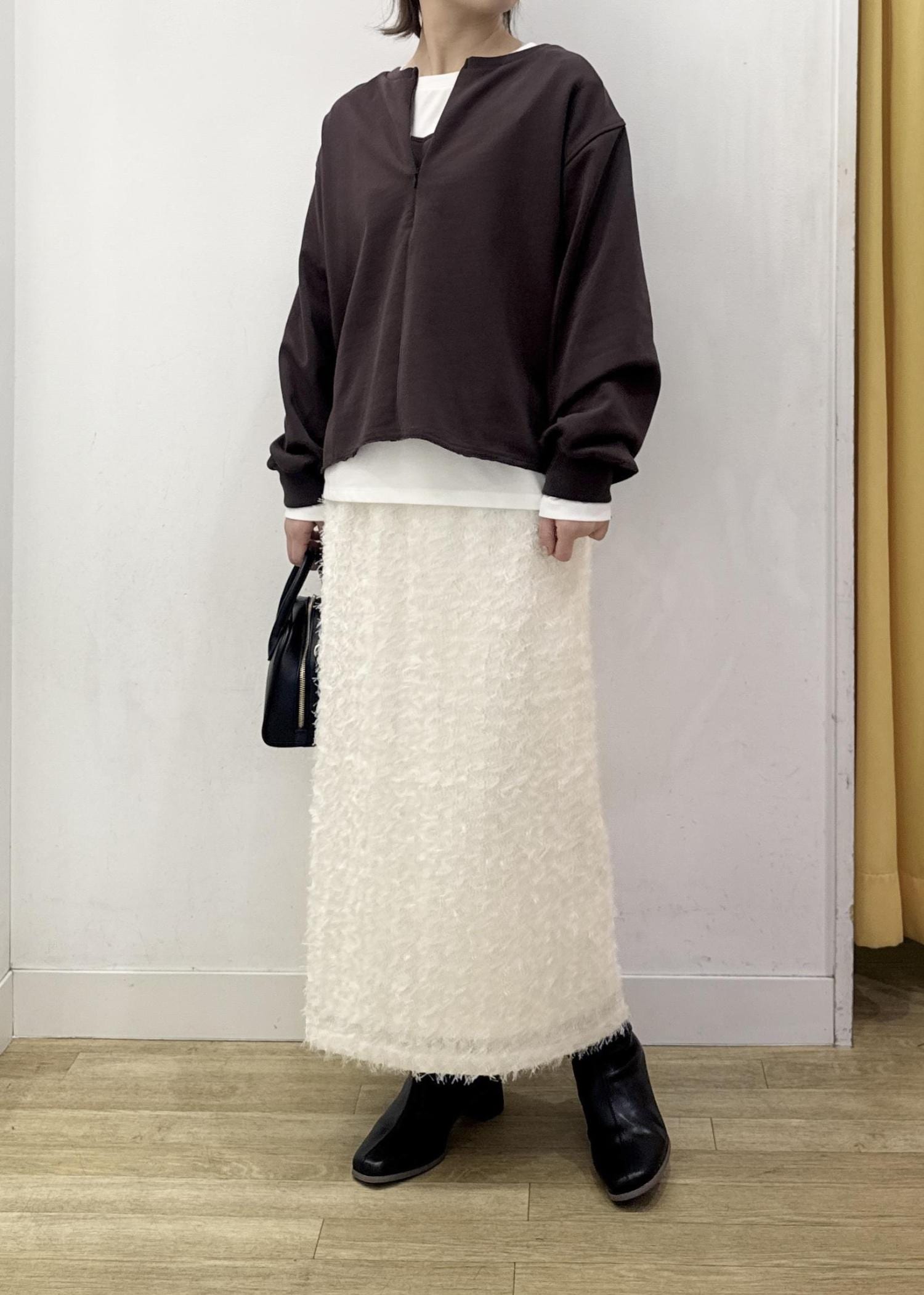 ゆとりがあるので、薄手のカットソーを重ね着するのもオススメです。