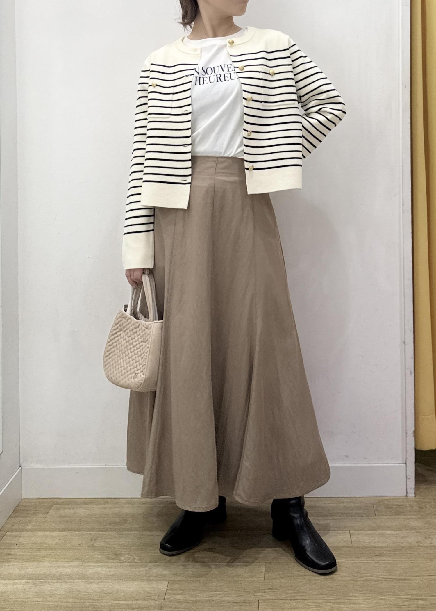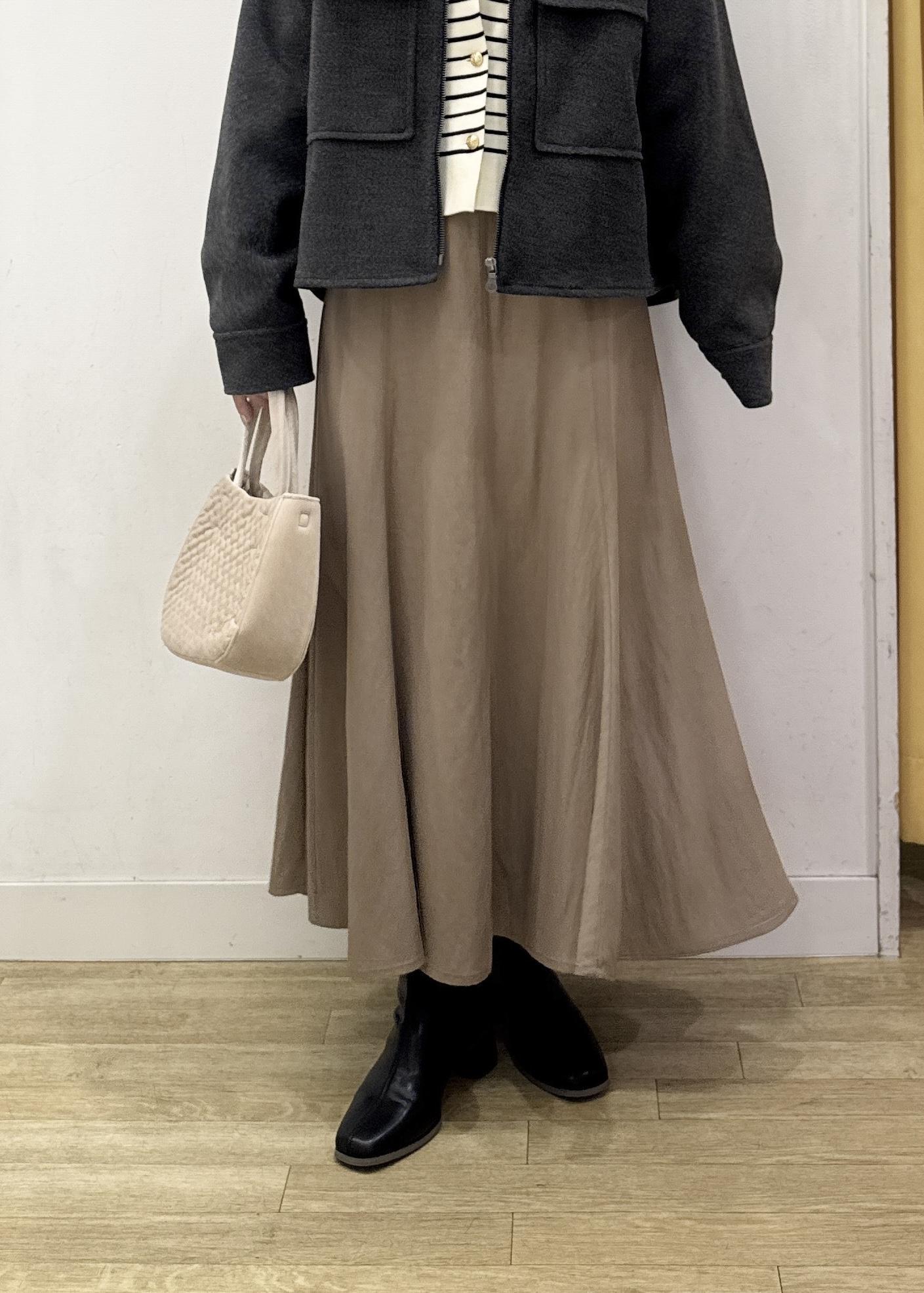 マーメイドシルエットのスカートを合わせるのがポイント☺︎