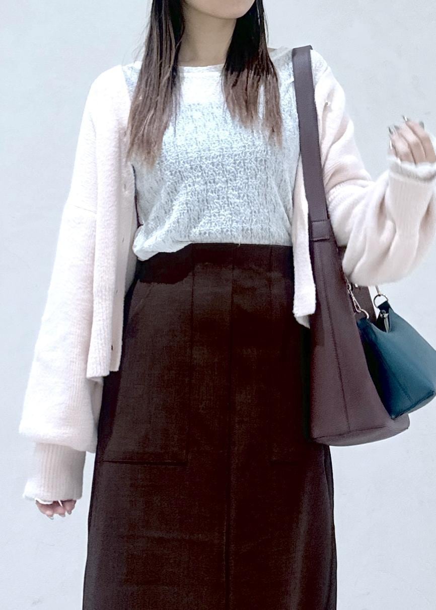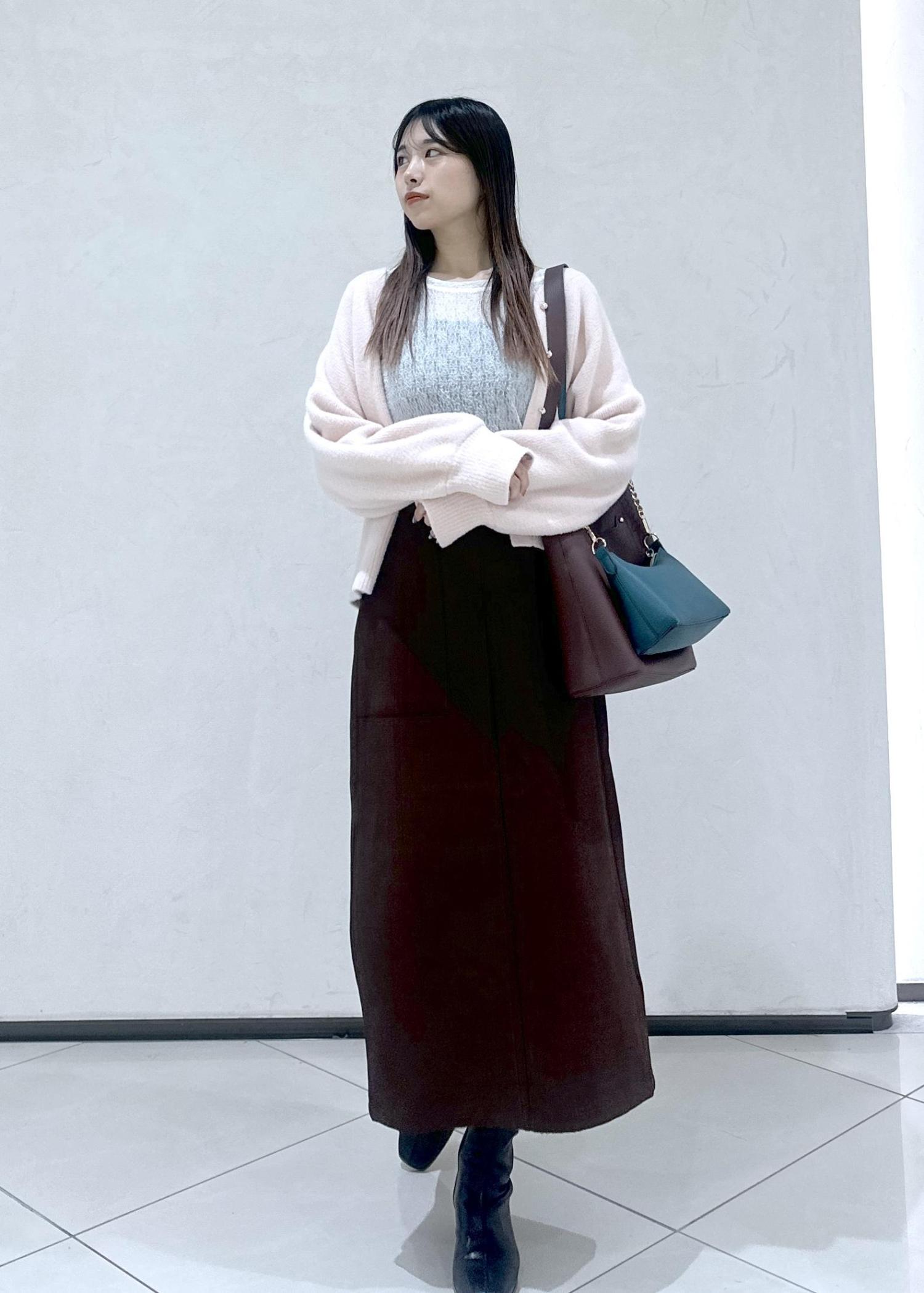 キレイめ得意ではない方もカーディガンが少しカジュアルな感じなので合わせていただきやすいかなと思います♩