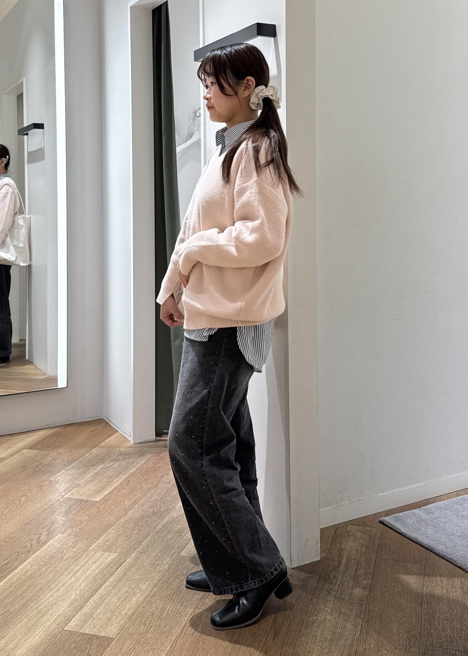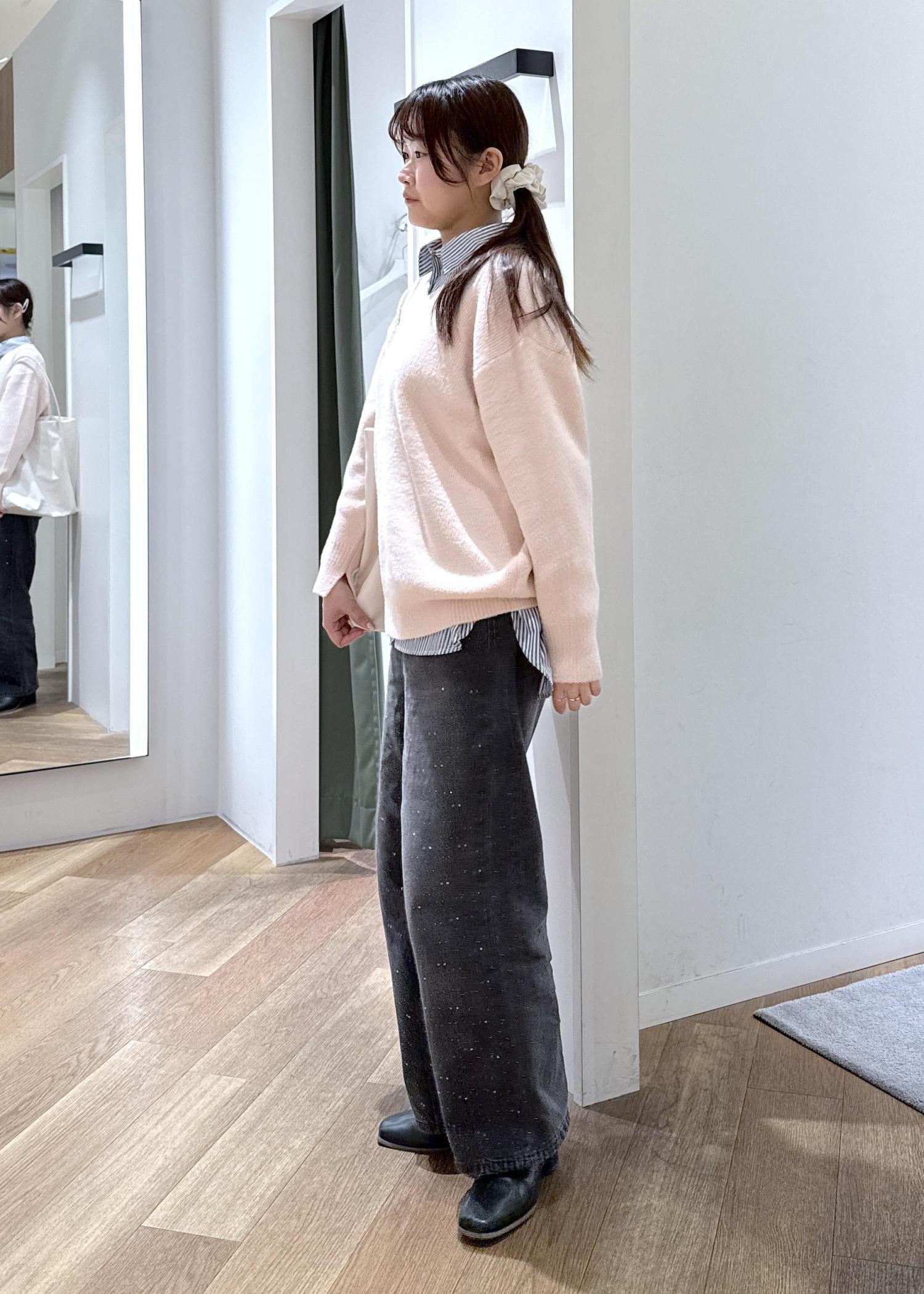 ボトムはデニムを合わせ、カジュアルな印象にしたのがポイントです。