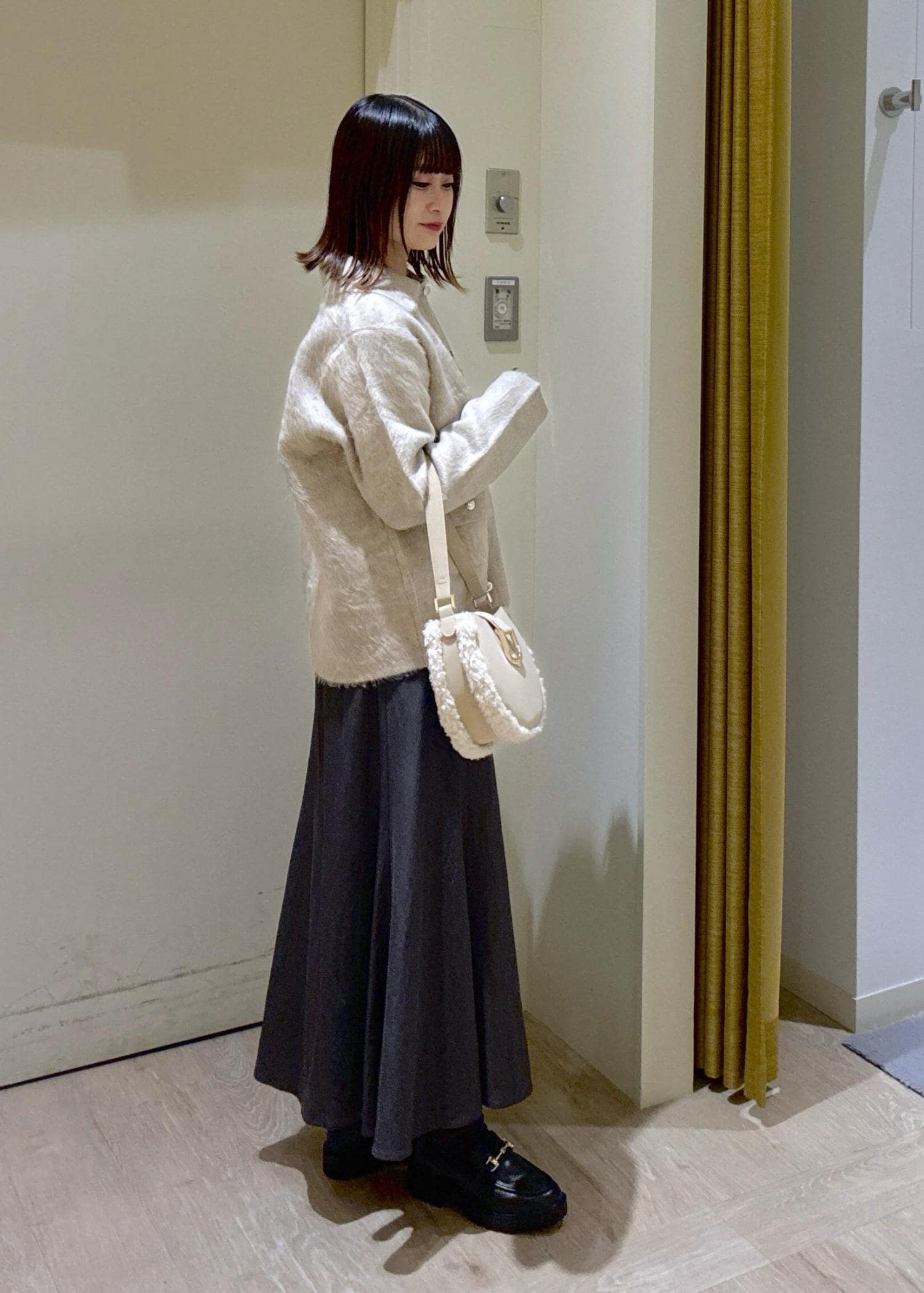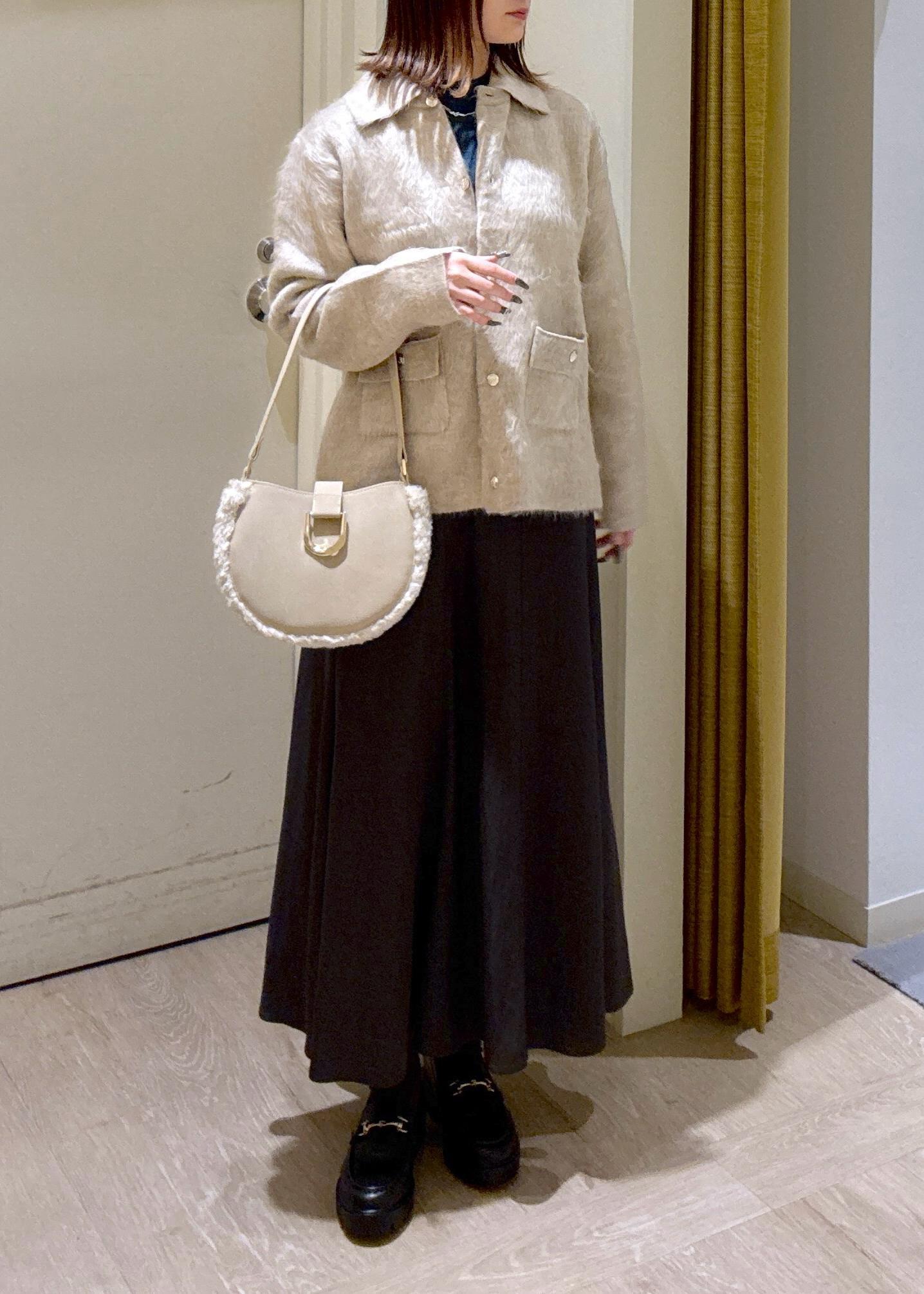 カジュアルにも、キレイめにも合わせられるトレンド感のあるムートンデザインバッグ◎