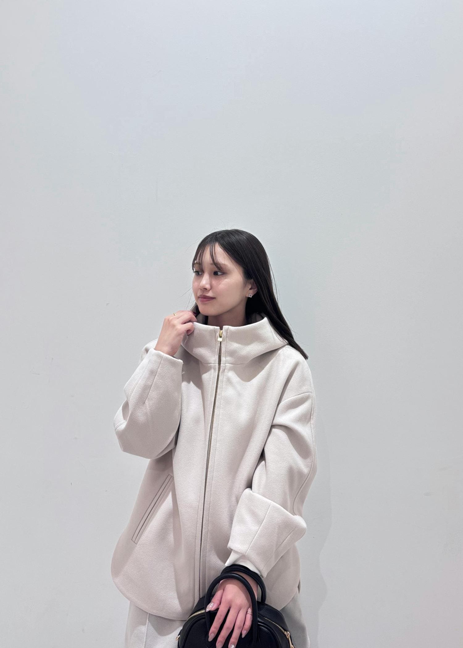 ゆったりしたサイズ感なので、中に着込むことができます。チャックを1番上までしめてもかわいいです◎