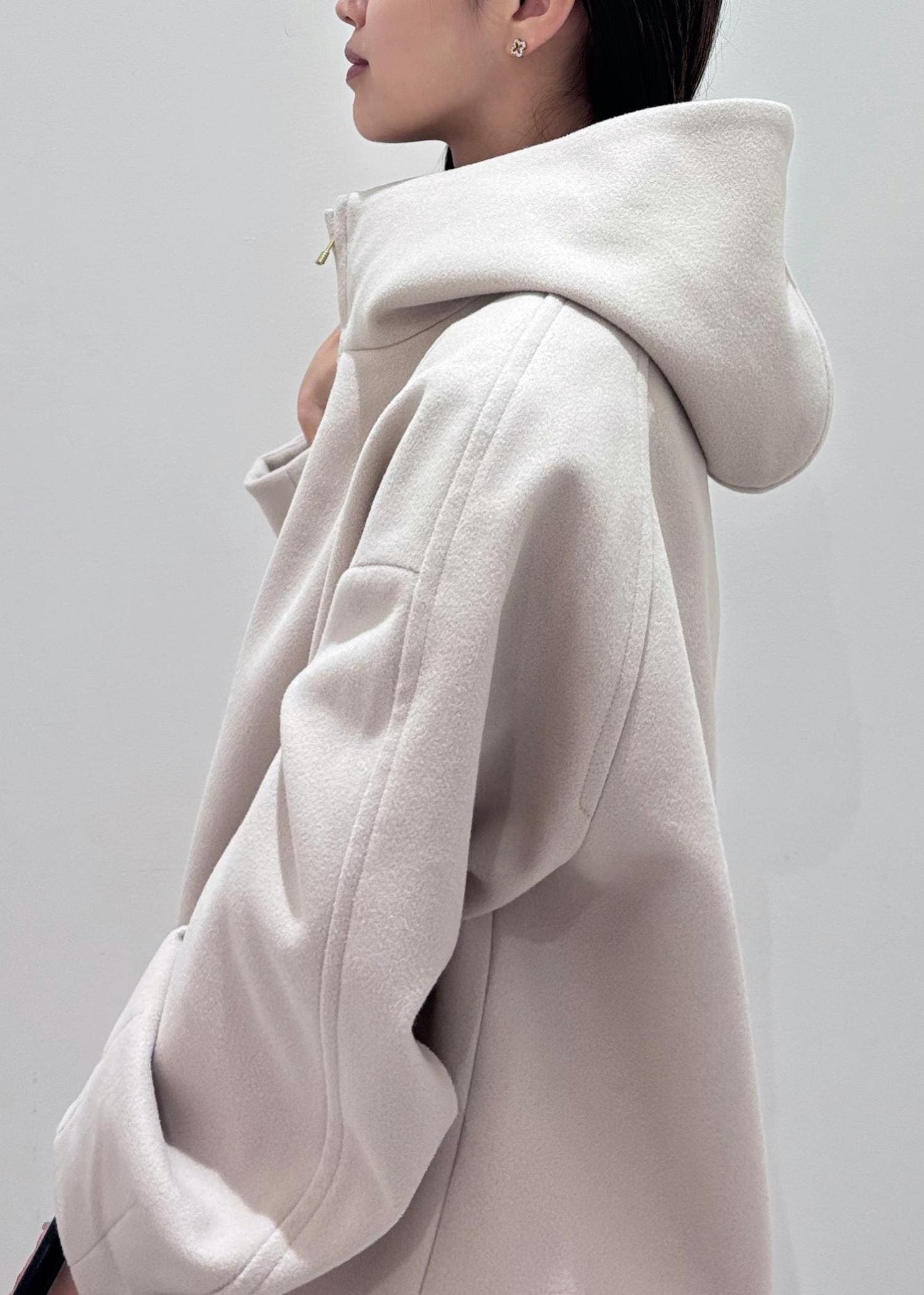 フード付きアウターで大人かわいいホワイトコーデ♪