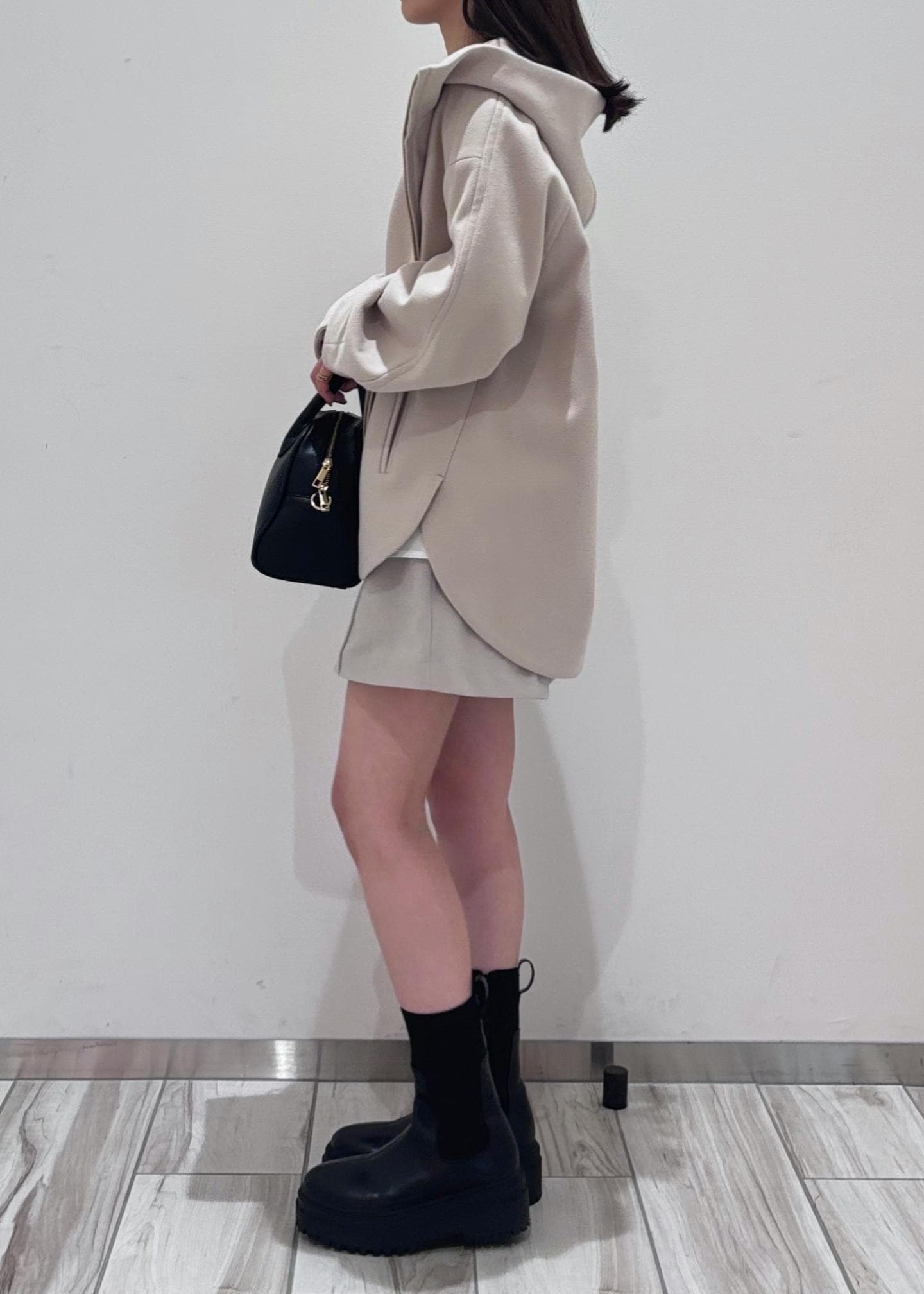 普段靴は23or23.5cmを履きますが、Mサイズでピッタリ履くことができました。厚底ですが、長時間はいても疲れにくく、足首のラインを綺麗に拾ってくれるので、履くだけでスタイルアップします。