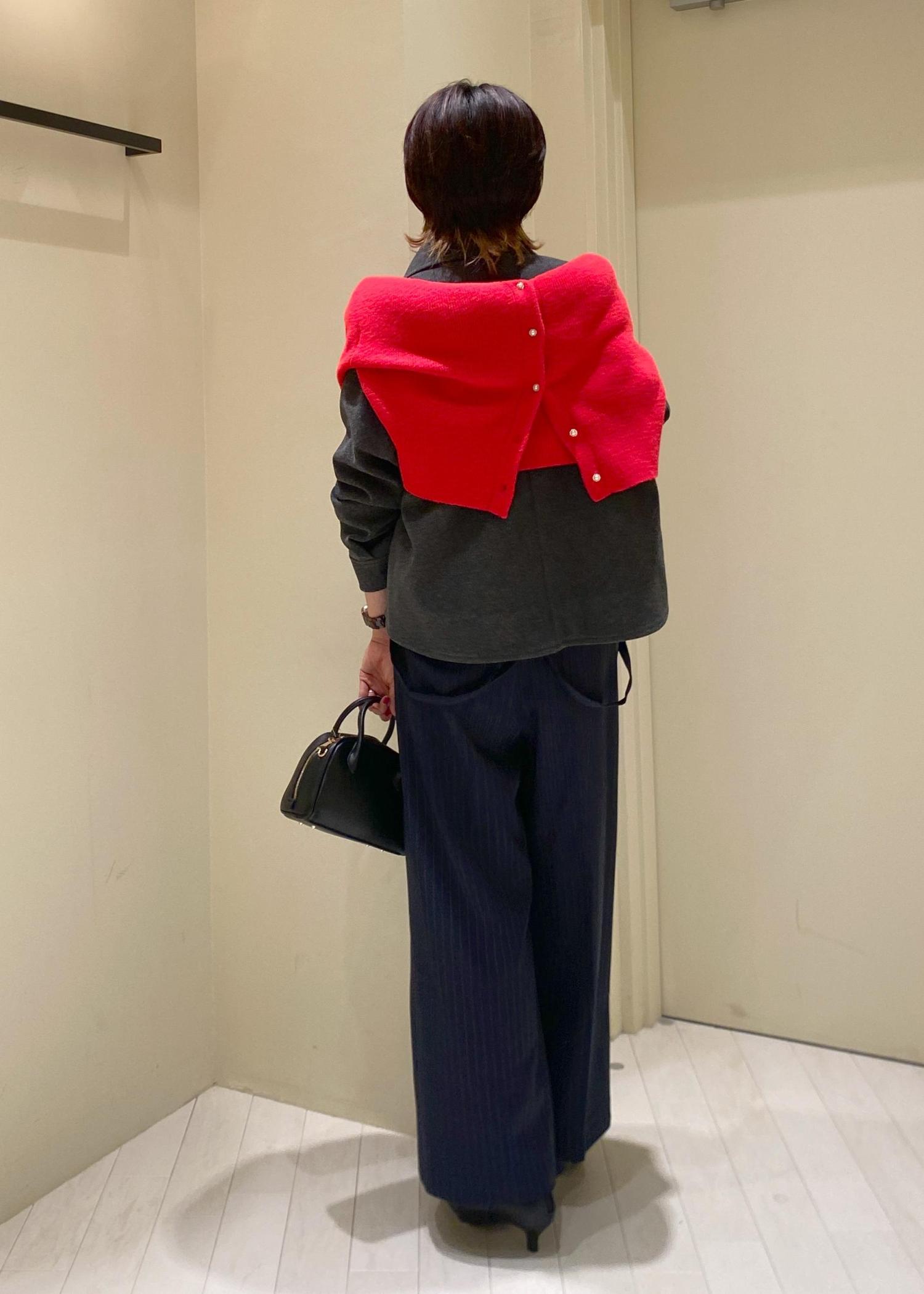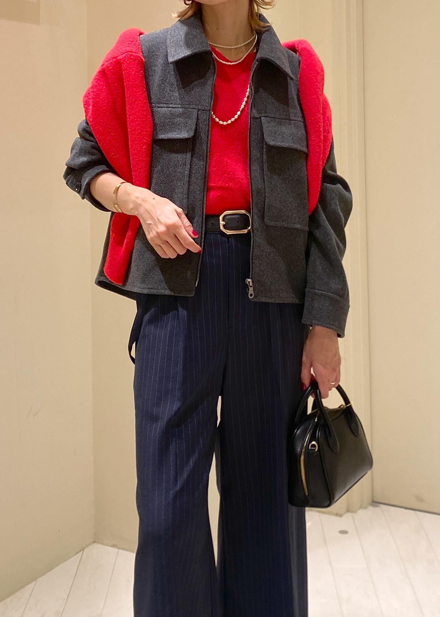 全体的にゆったりルーズなサイズ感ですが、ショート丈でスッキリとメリハリかるスタイリングが可能です。 -