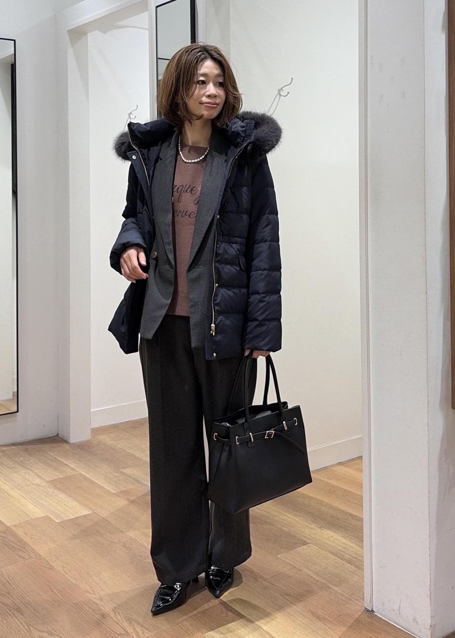 ネイビーダウン×セットアップコーデ