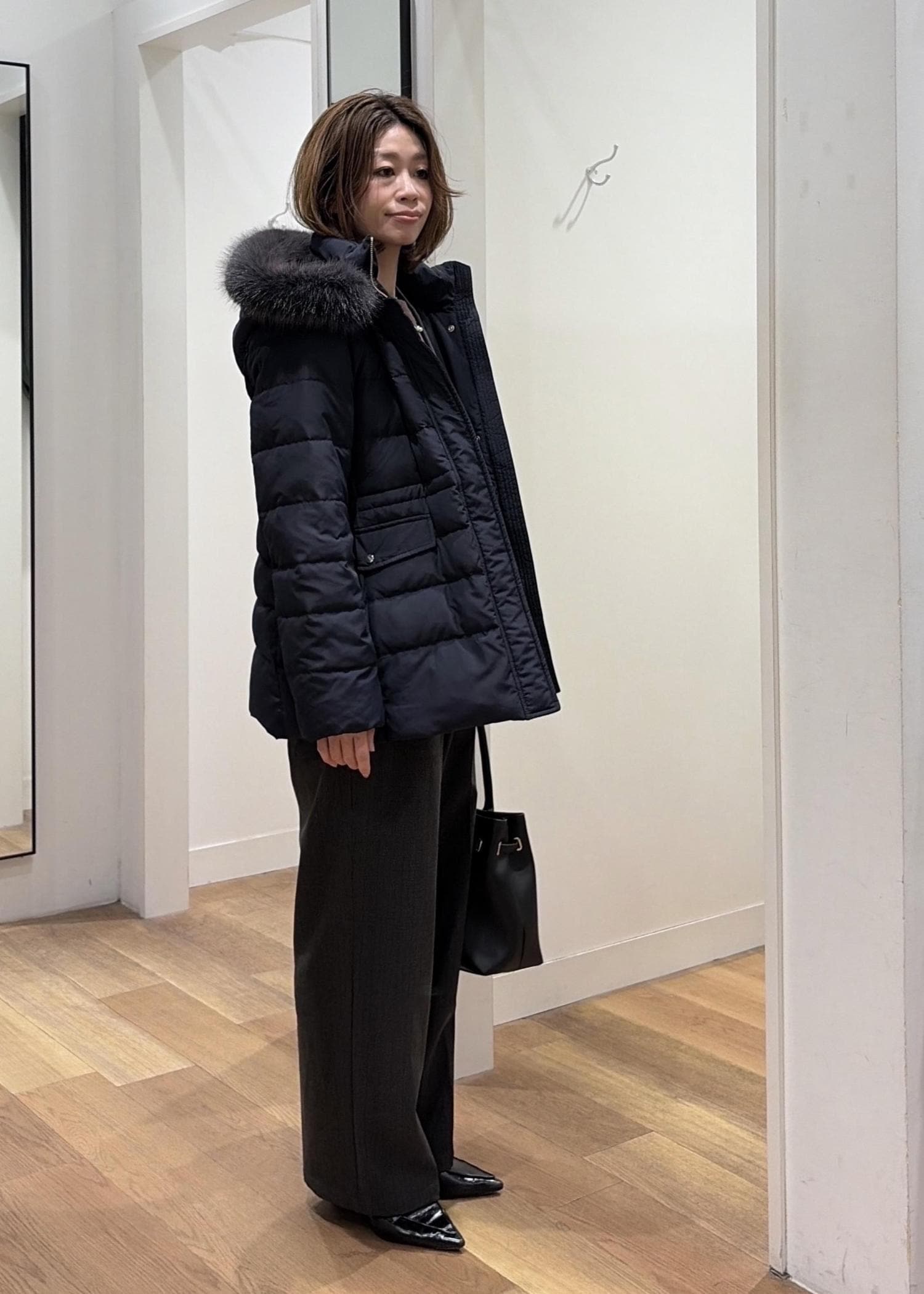 ファーのボリューム感がフェミニンな