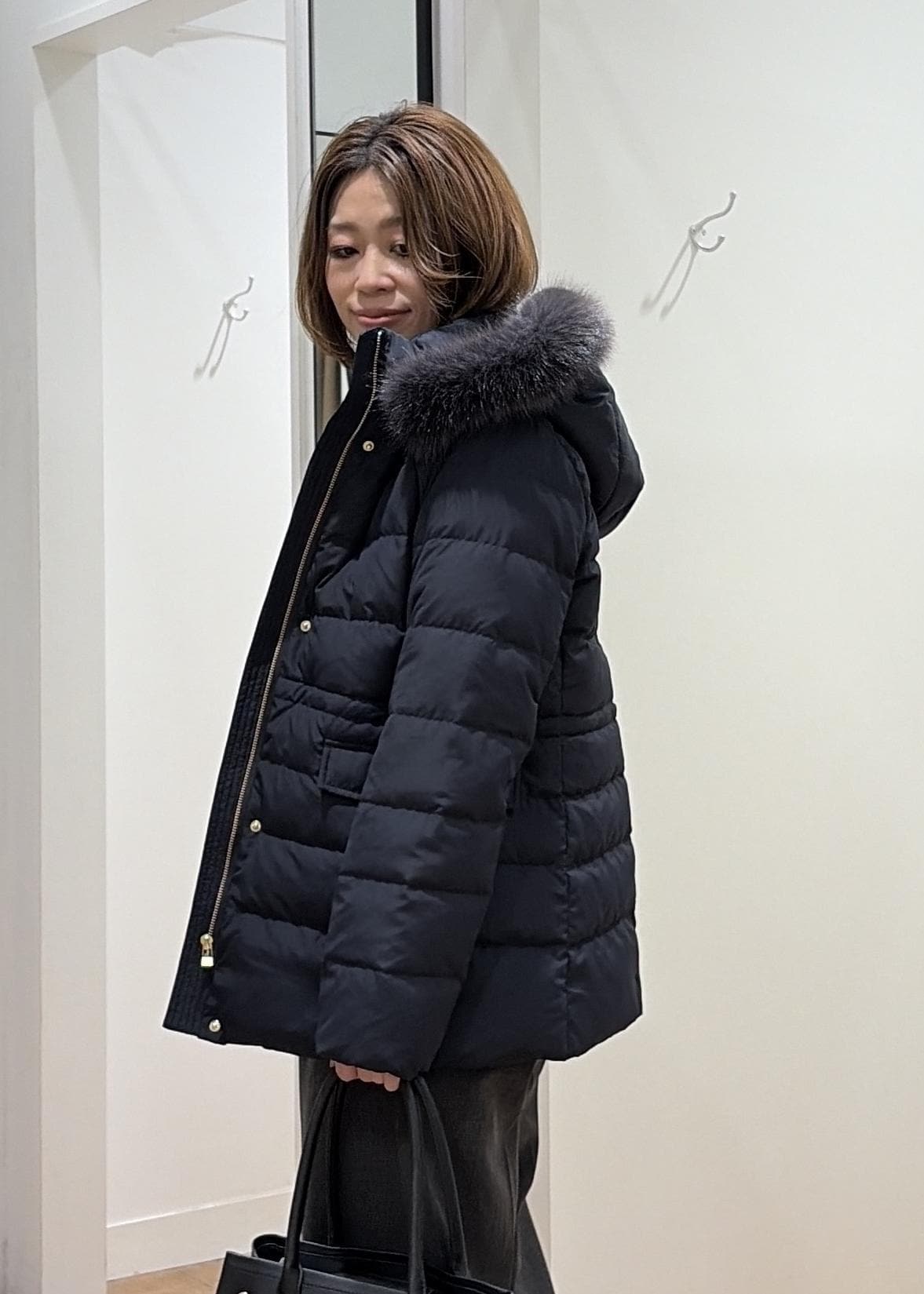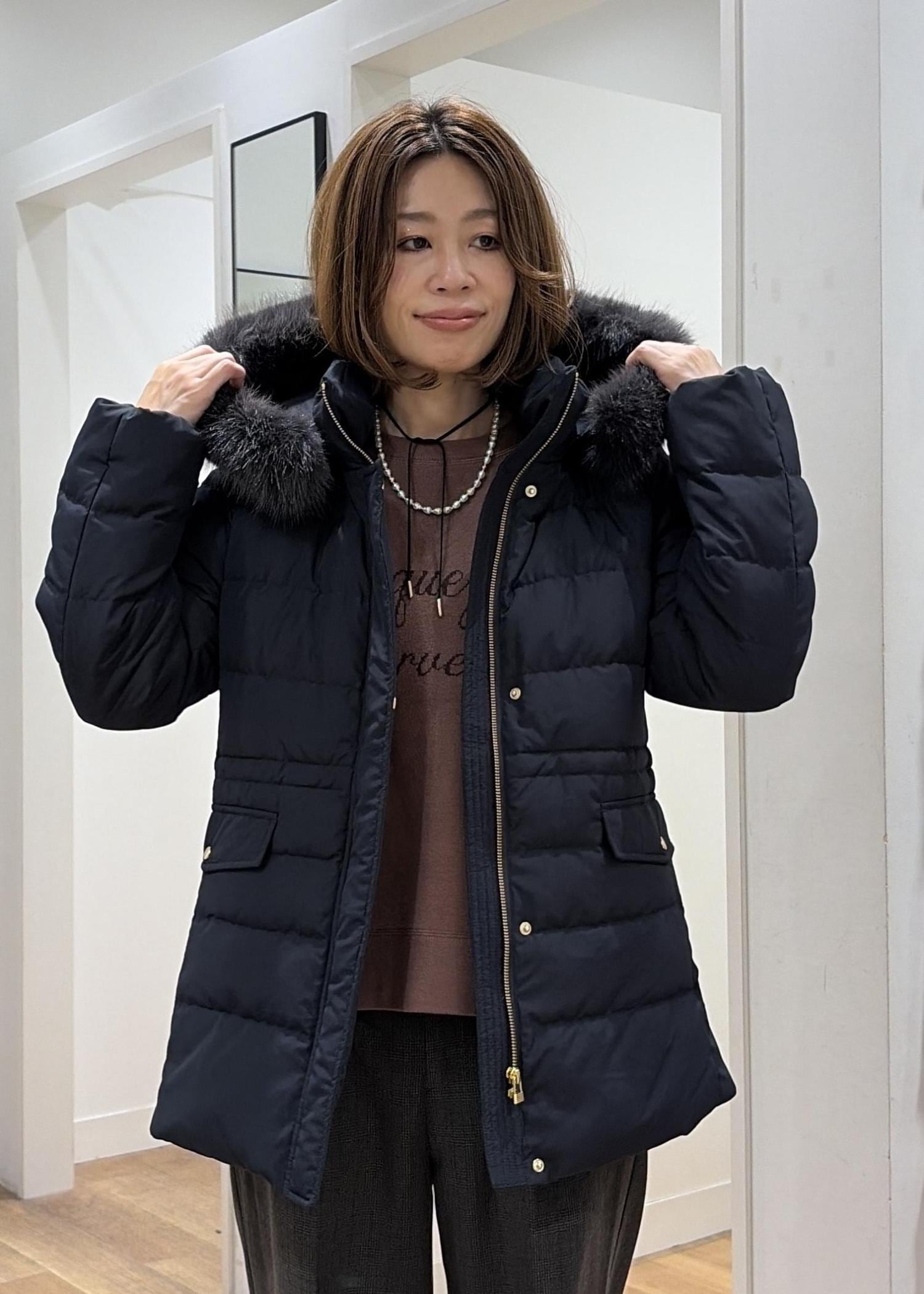 【GREEN DOWN/グリーンダウン】ファー付きダウンミドル丈コート/リンクコーデ