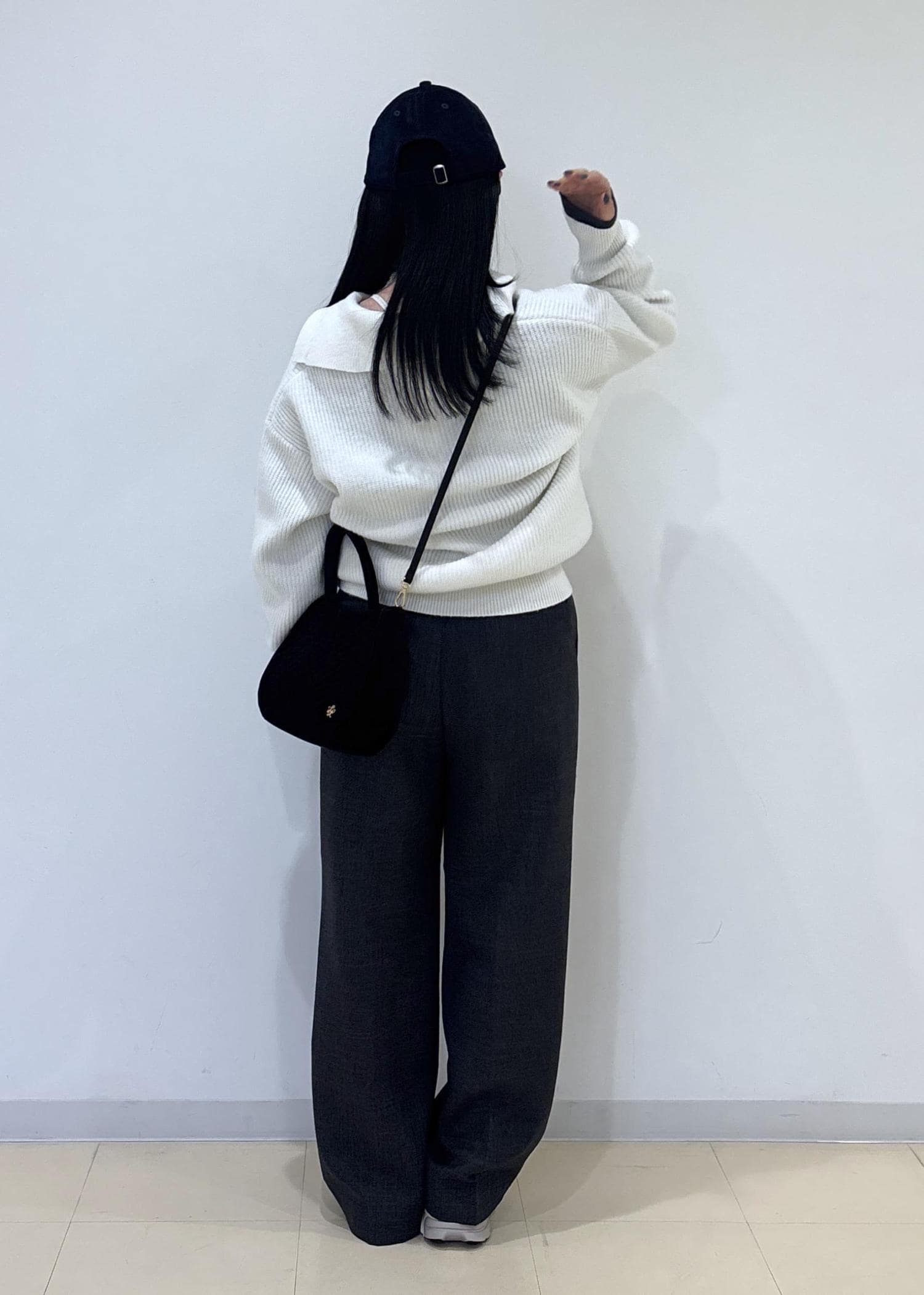 ホワイト×チャコール×ブラックの3トーンでまとめた、シンプルながら洗練された印象のスタイル