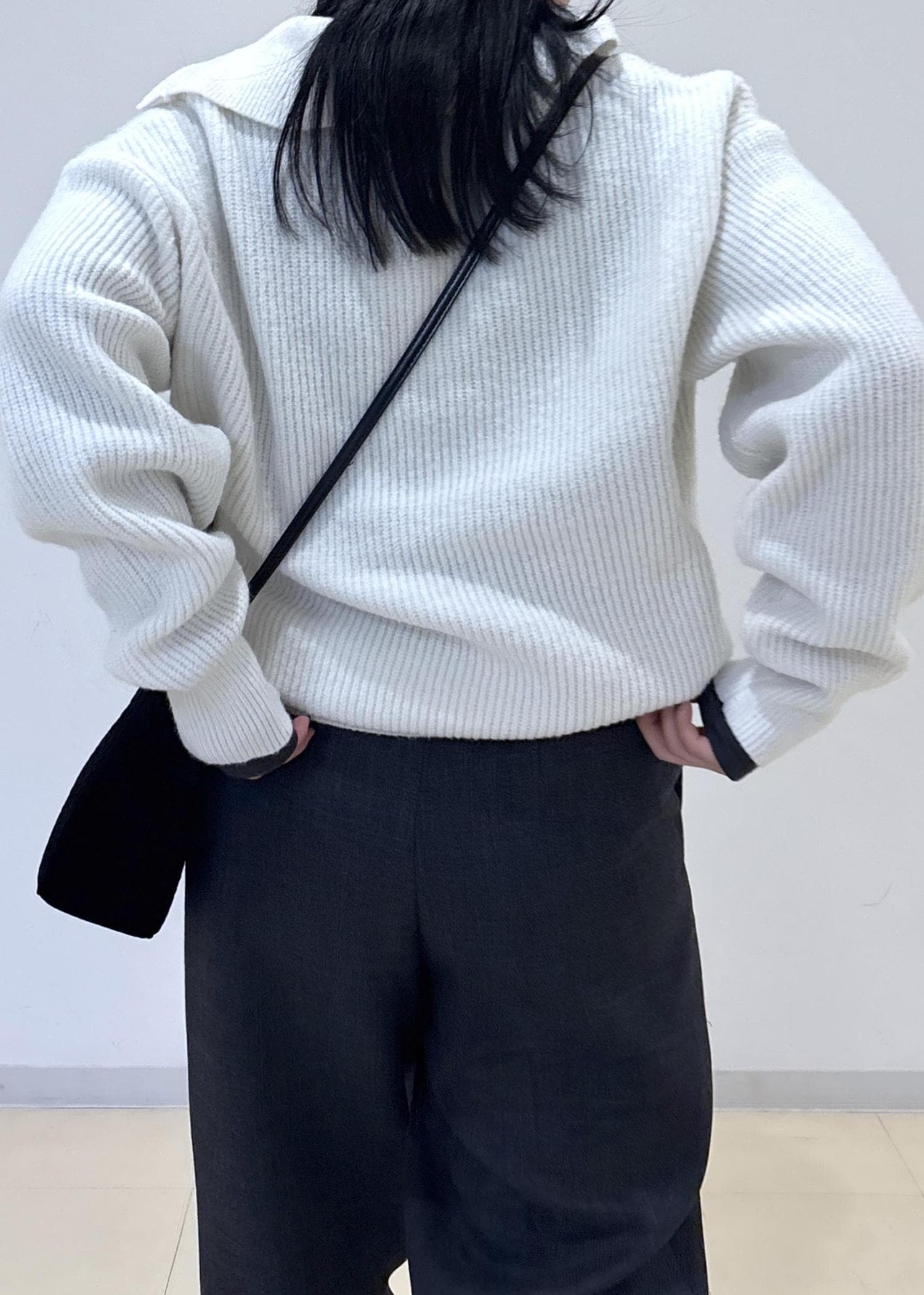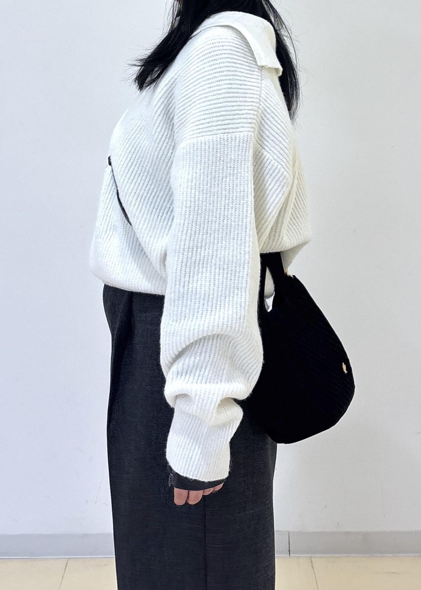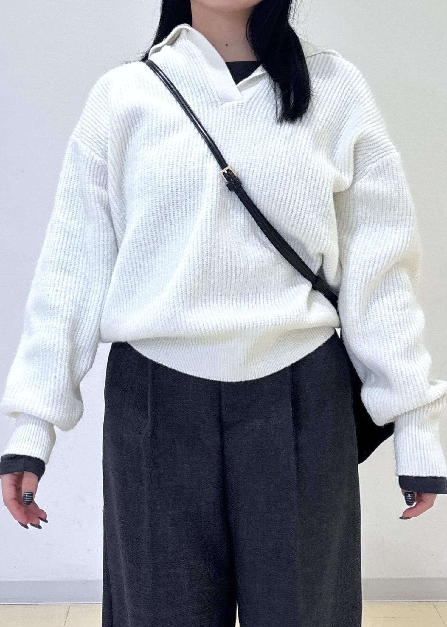 リラックス感のあるシルエットながら、顔まわりをすっきり見せてくれる優秀アイテムです。