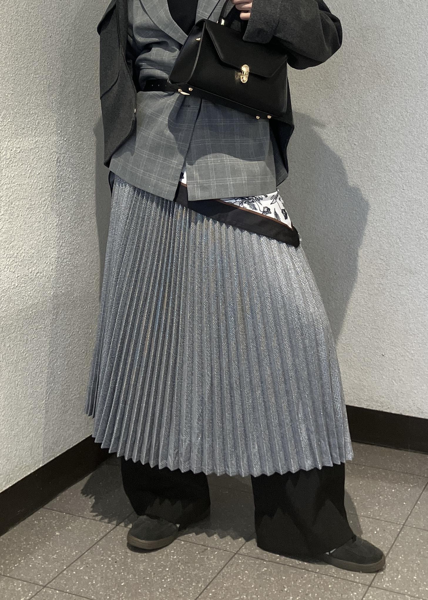 プリーツが細かくて綺麗で、プリーツの縦のラインが脚長効果を出してくれます! -