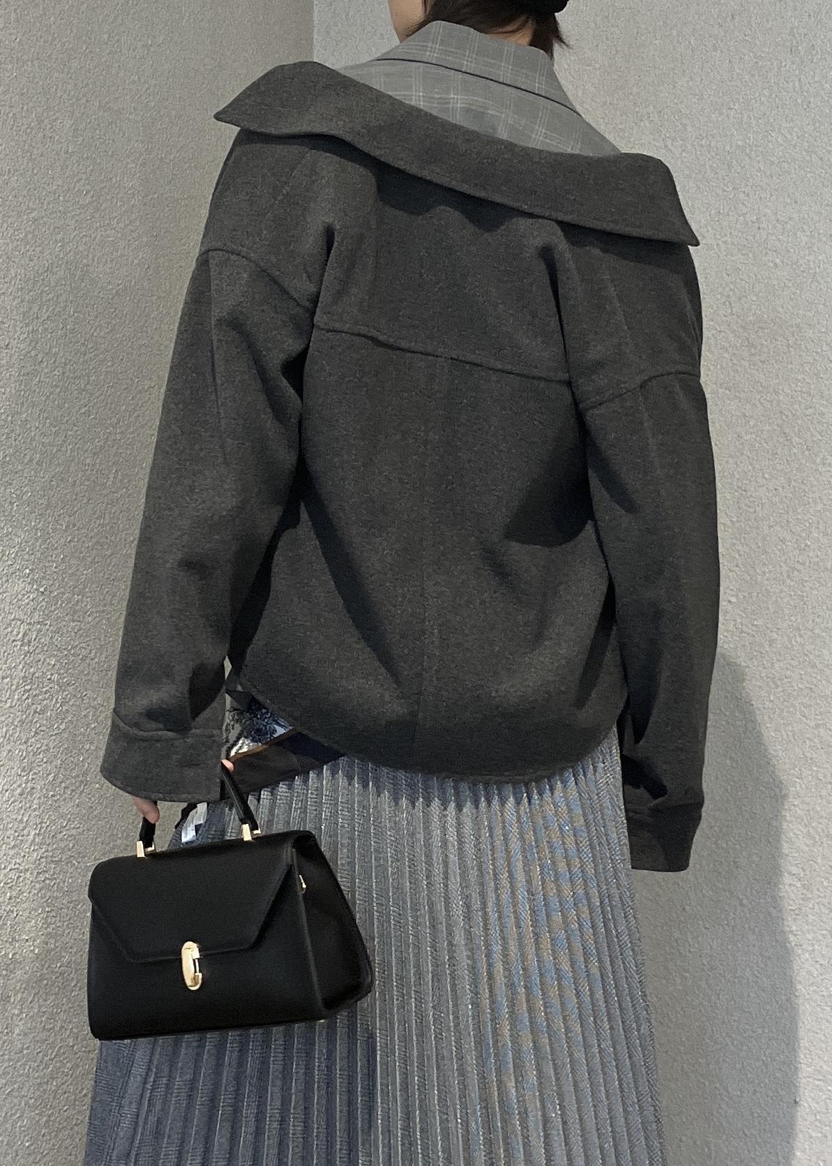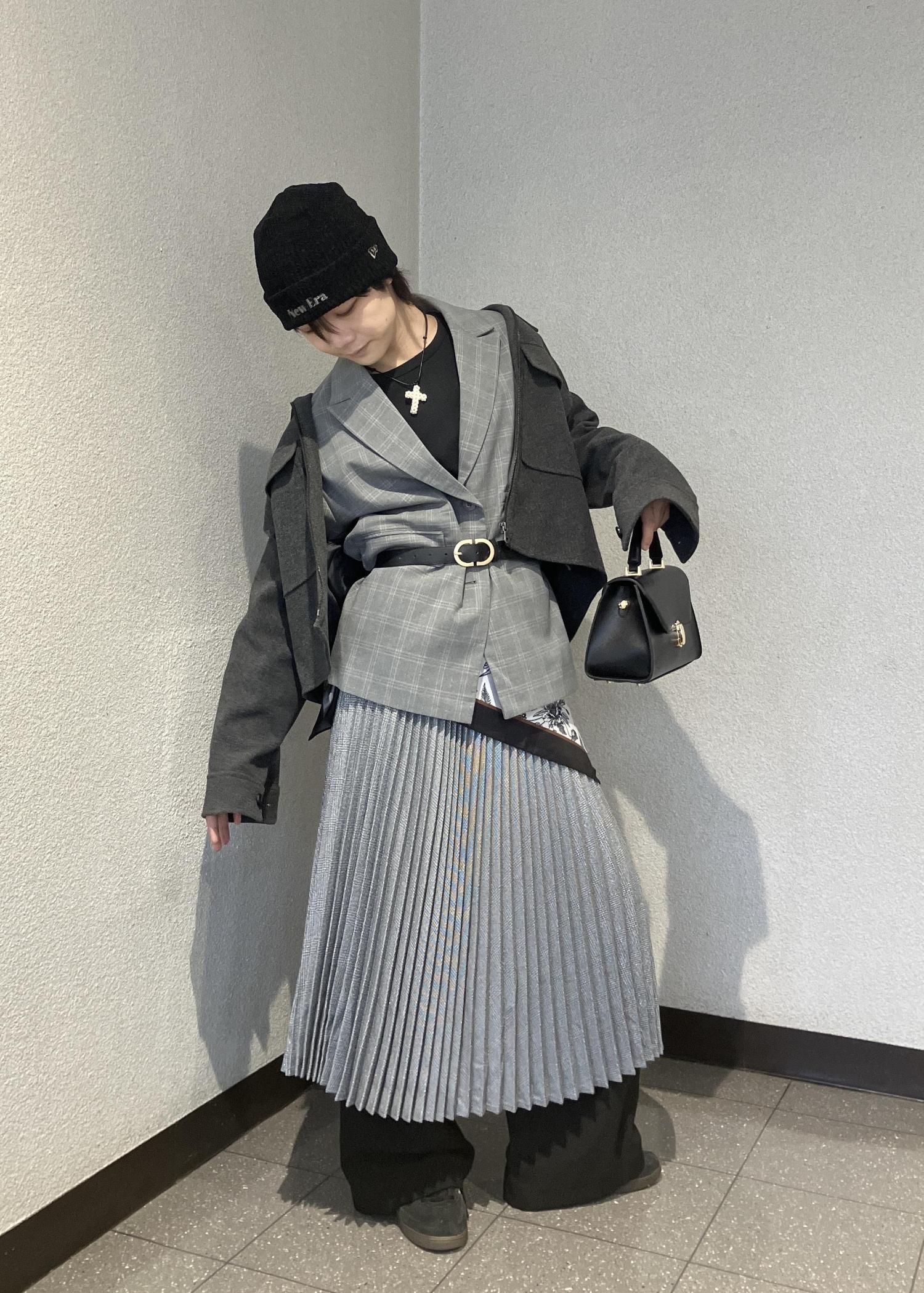 モノトーンで仕上げつつ、ジャケットのグリーンのラインがさり気ないアクセントに!(写真じゃ伝わりにくいですが…)