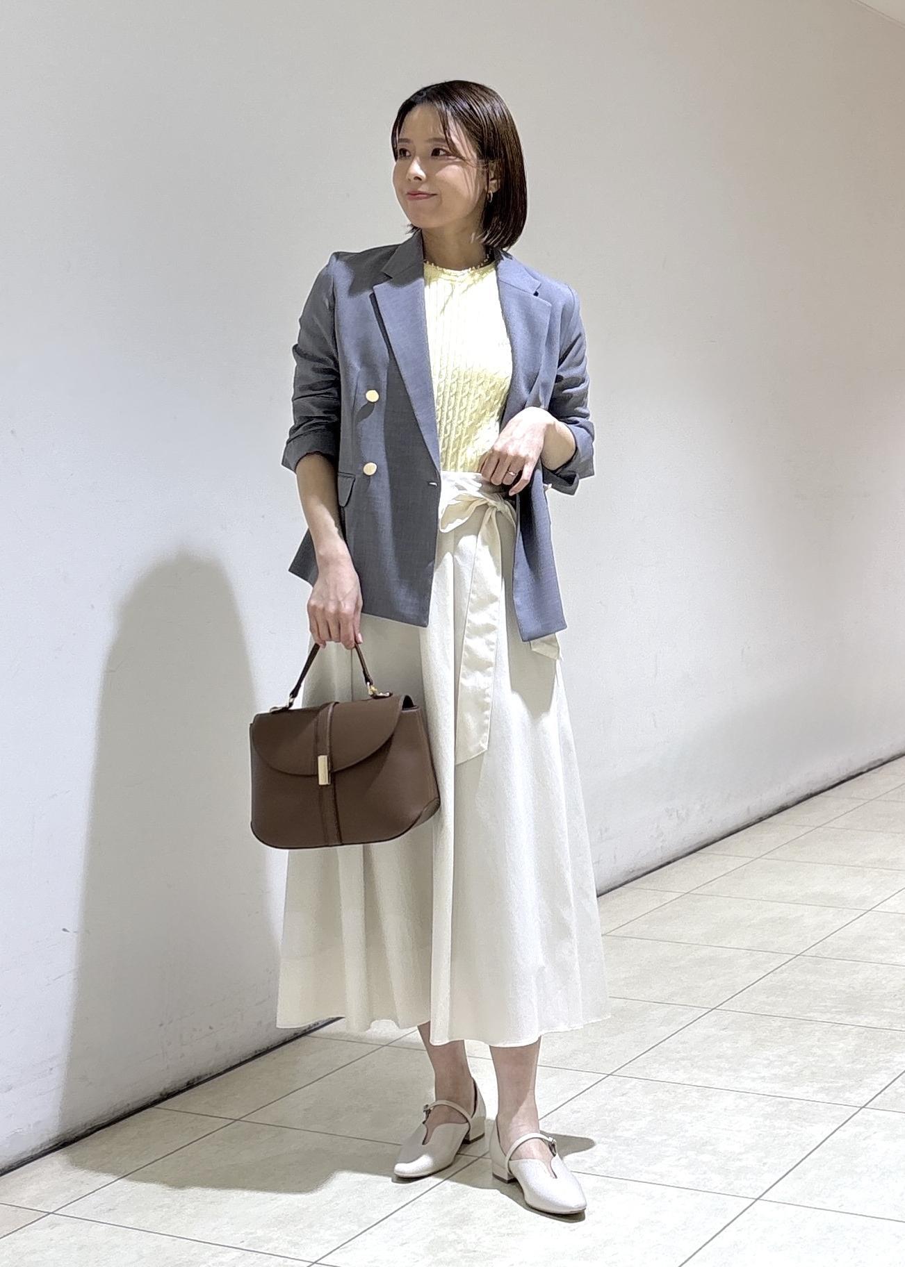 着丈は腰回りくらいで、すっきりとした丈なのでパンツでもスカートでも合わせやすいです。 -