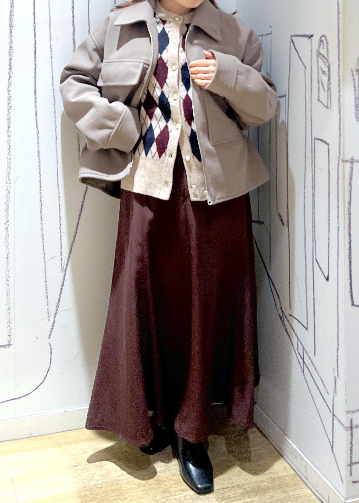 ROPÉ PICNICジャージーメルトンシリーズ ポケット付きジップブルゾン/リンクコーデブラウン系 / F¥9,999レビューゆったりシルエットのメルトンコート。お尻にかかる着丈です!軽くゆったりとした作りで厚手のニットとも合わせて着れます。シンプルでON/OFF兼用で楽しめる一枚です。小柄さんにも着やすい着丈ですね◎