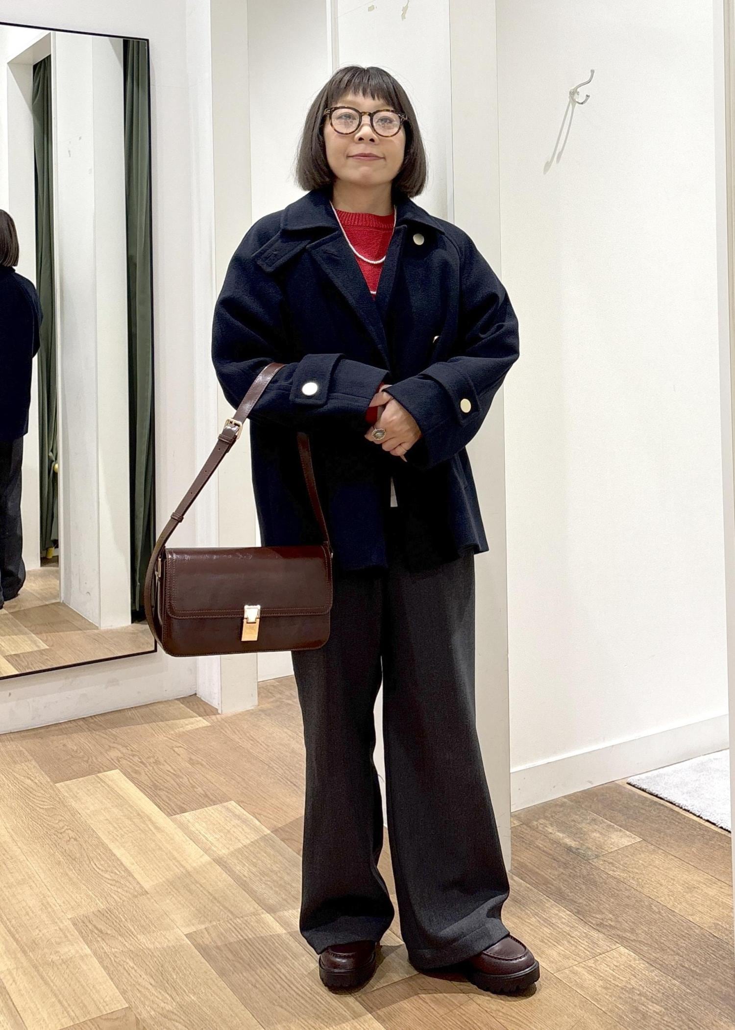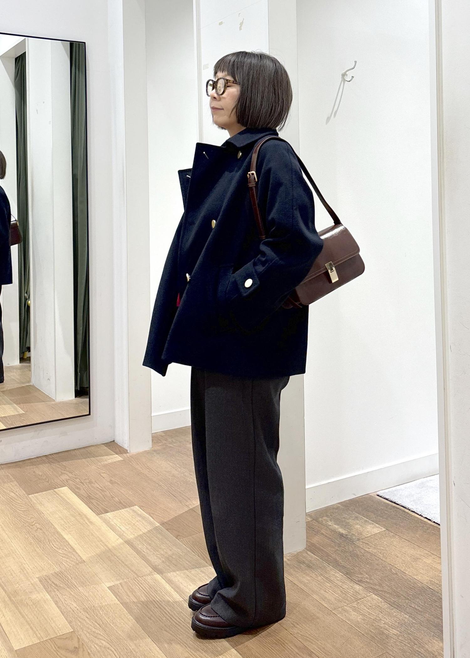 今回は、きちんと感のあるメルトン素材のミディアム丈のコートを着用してみました♪