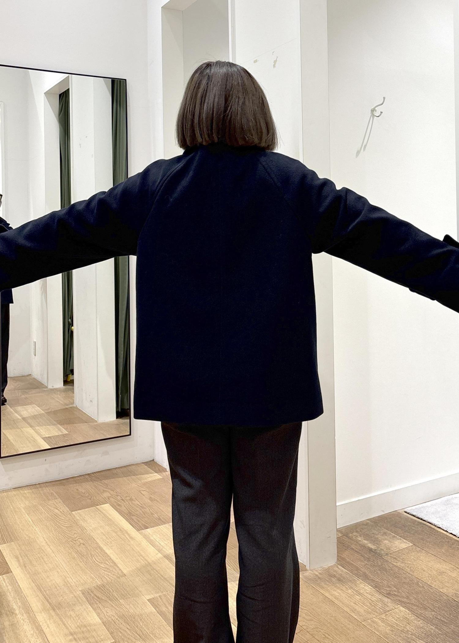 ROPÉ PICNICジャージーメルトンシリーズ 金ボタンミドル丈コート/リンクコーデネイビー / F¥10,989レビューラグラン袖なので肩周りが動きやすく、ゆったりデザインなので厚手のインナーでも◎