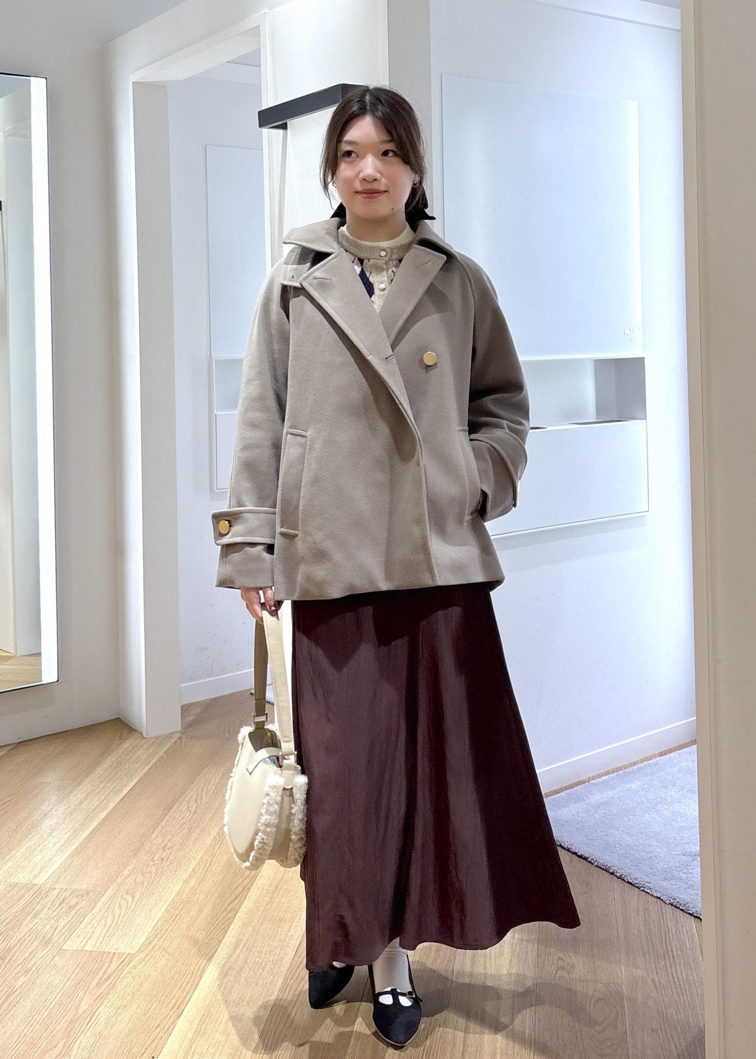 ベージュ×ブラウンの冬コーデ