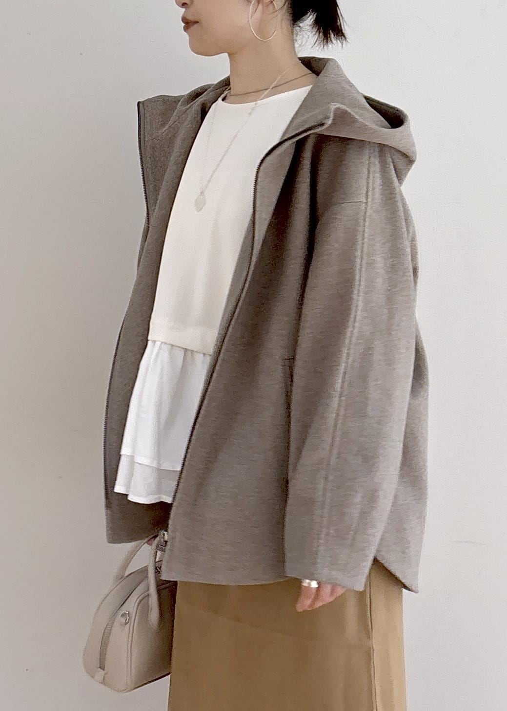 ROPÉ PICNICジャージーメルトンシリーズ ジップアップフーデッドコート/無地・チェック/リンクコーデダークブラウン / F¥10,989レビューロペピクニック定番のフードコートです。155cmで腰回りがすっぽり隠れる丈です。オーバーサイズなので厚手のニットも◎生地が軽く着心地が楽なのも嬉しいです。