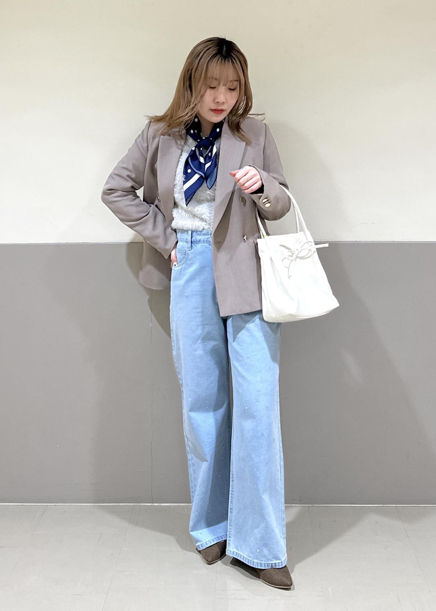 可愛いながらもしっかりと防寒できるネイビーのコートに、ピンクのカーディガンを合わせることで女性らしく暖かいコーディネートに仕上げました!デニムシャツをレイヤードすることで甘くなりすぎないことも意識しました。