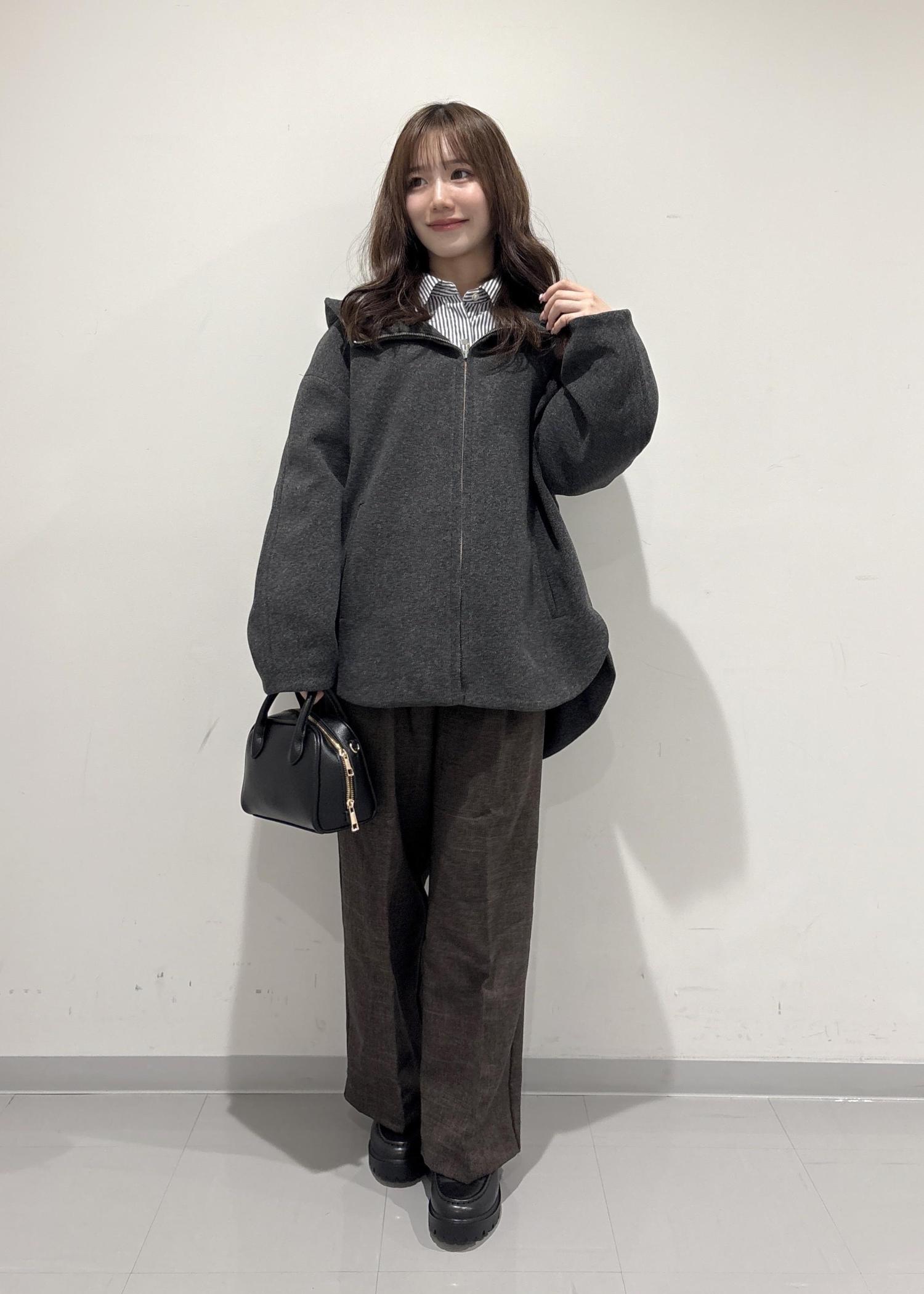 中のストライプのシャツと合わせたり、ダークブラウンのパンツでカジュアル感を増してみました!厚底のローファーで少し背伸びした印象になります!