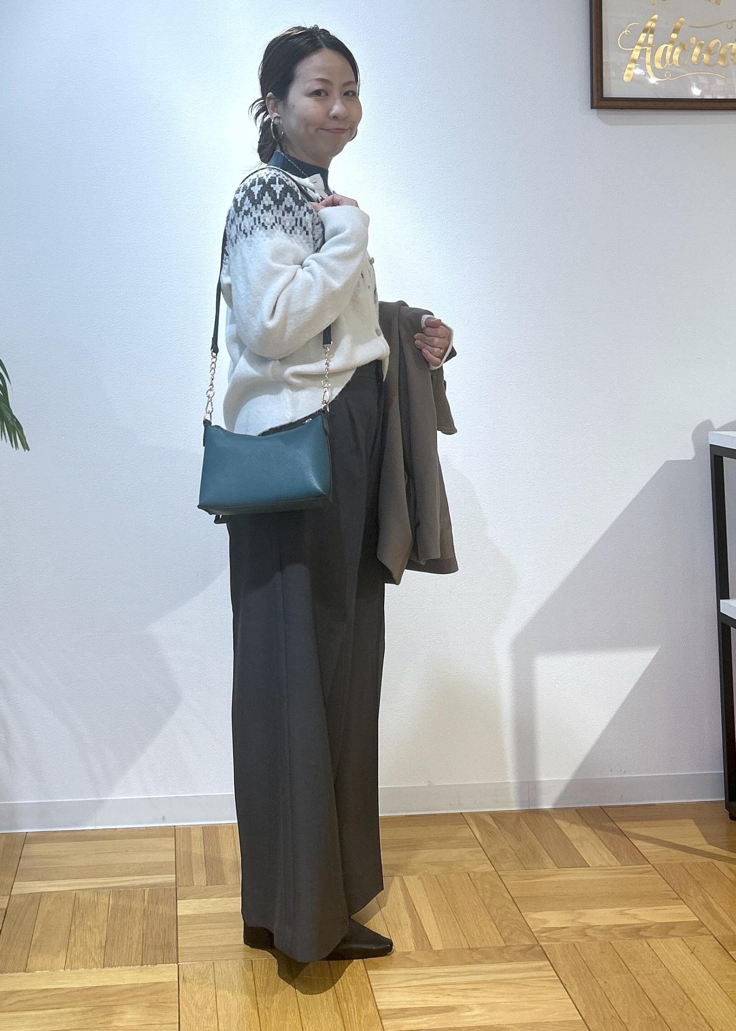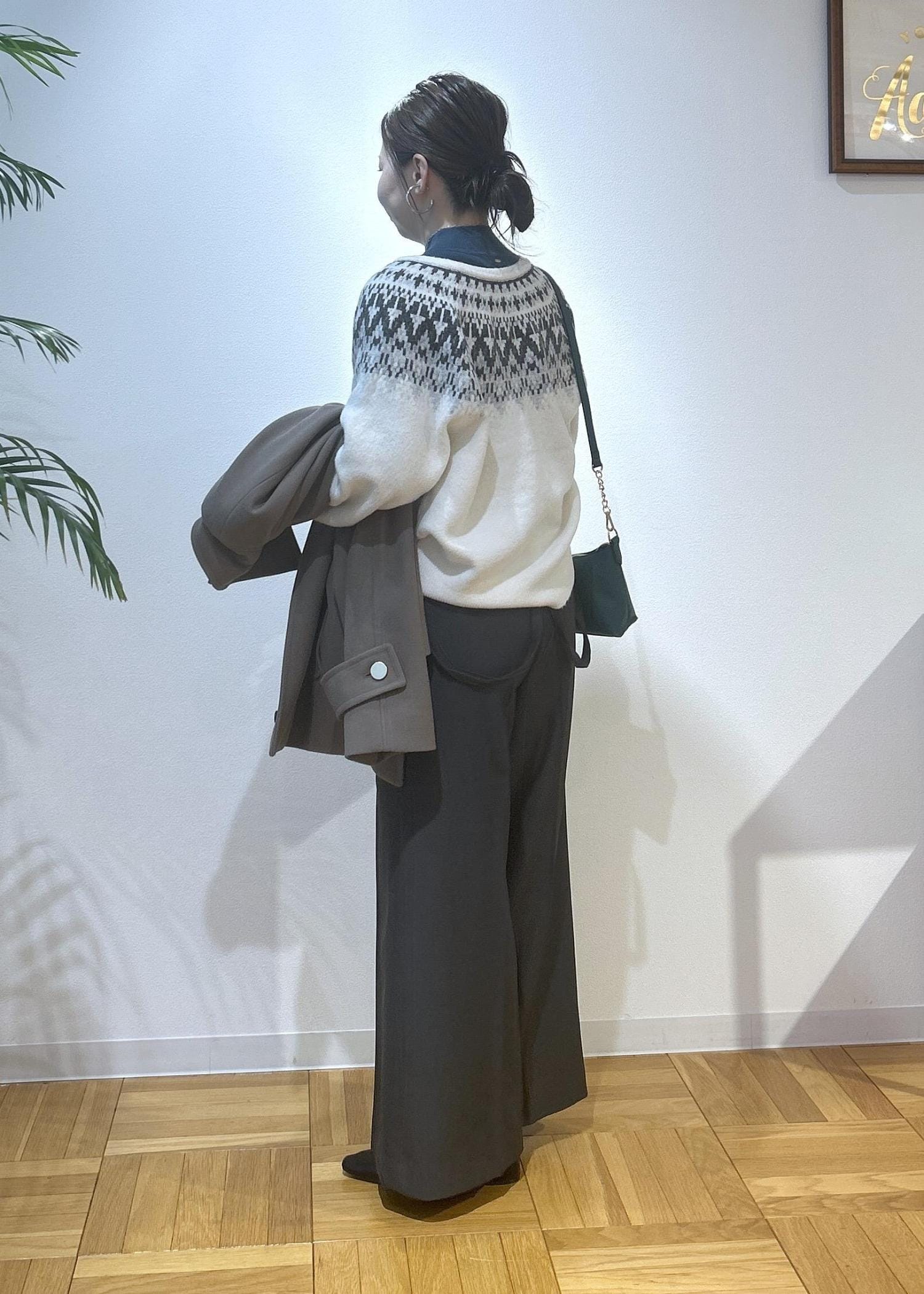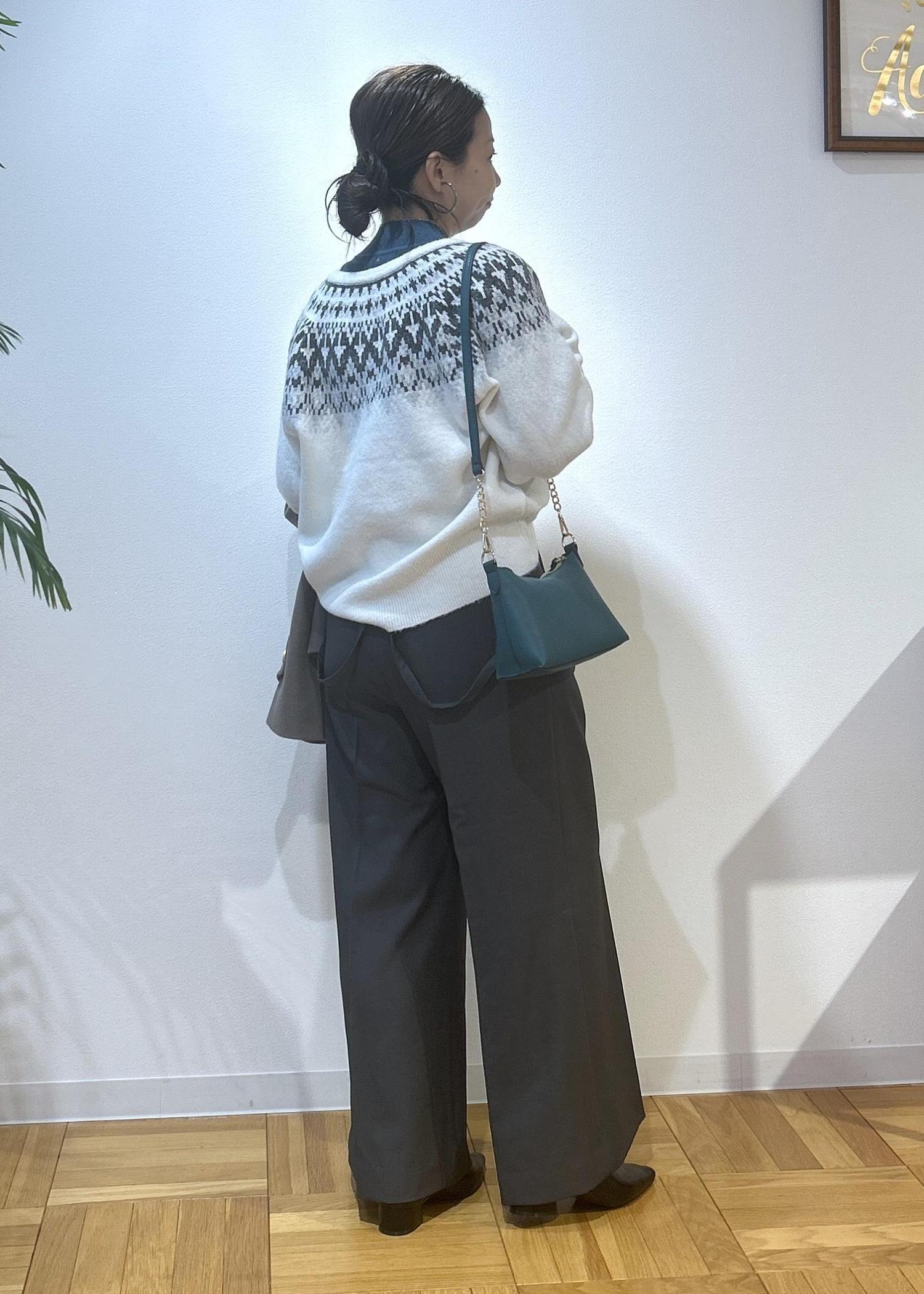 冬になるとノルディック柄が着たくなりますよね。カジュアル過ぎない着こなしにしたので、大人っぽくノルディック柄を楽しみたい方にはおすすめのコーディネートです。