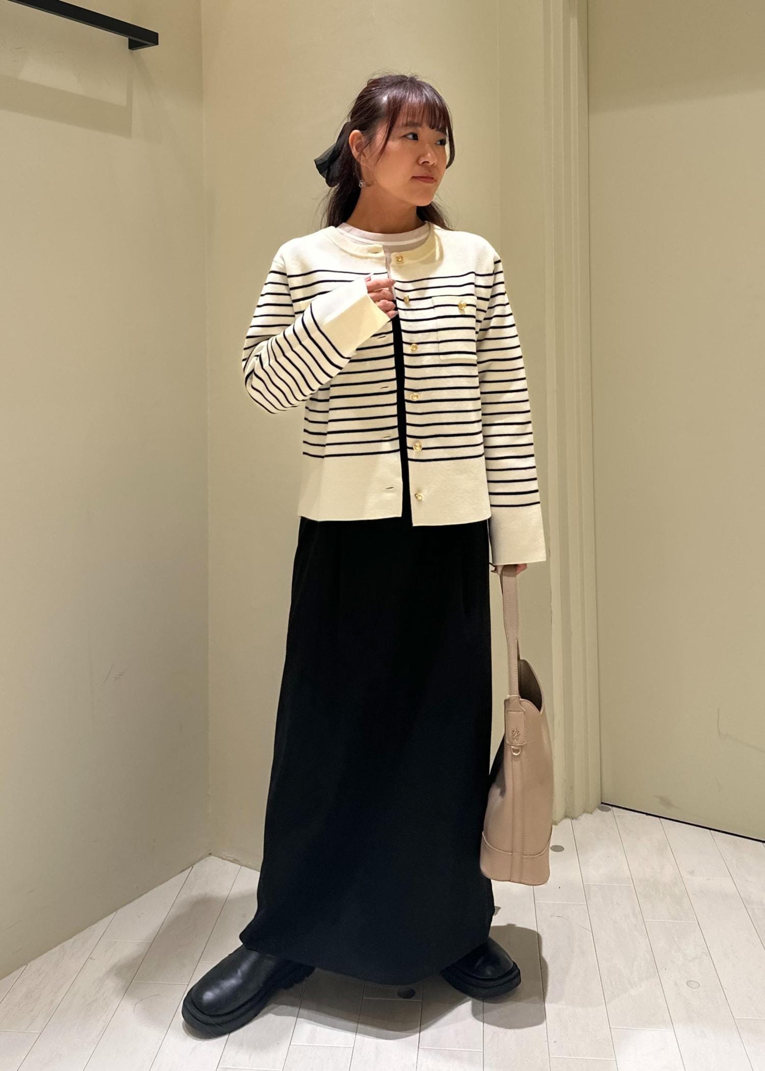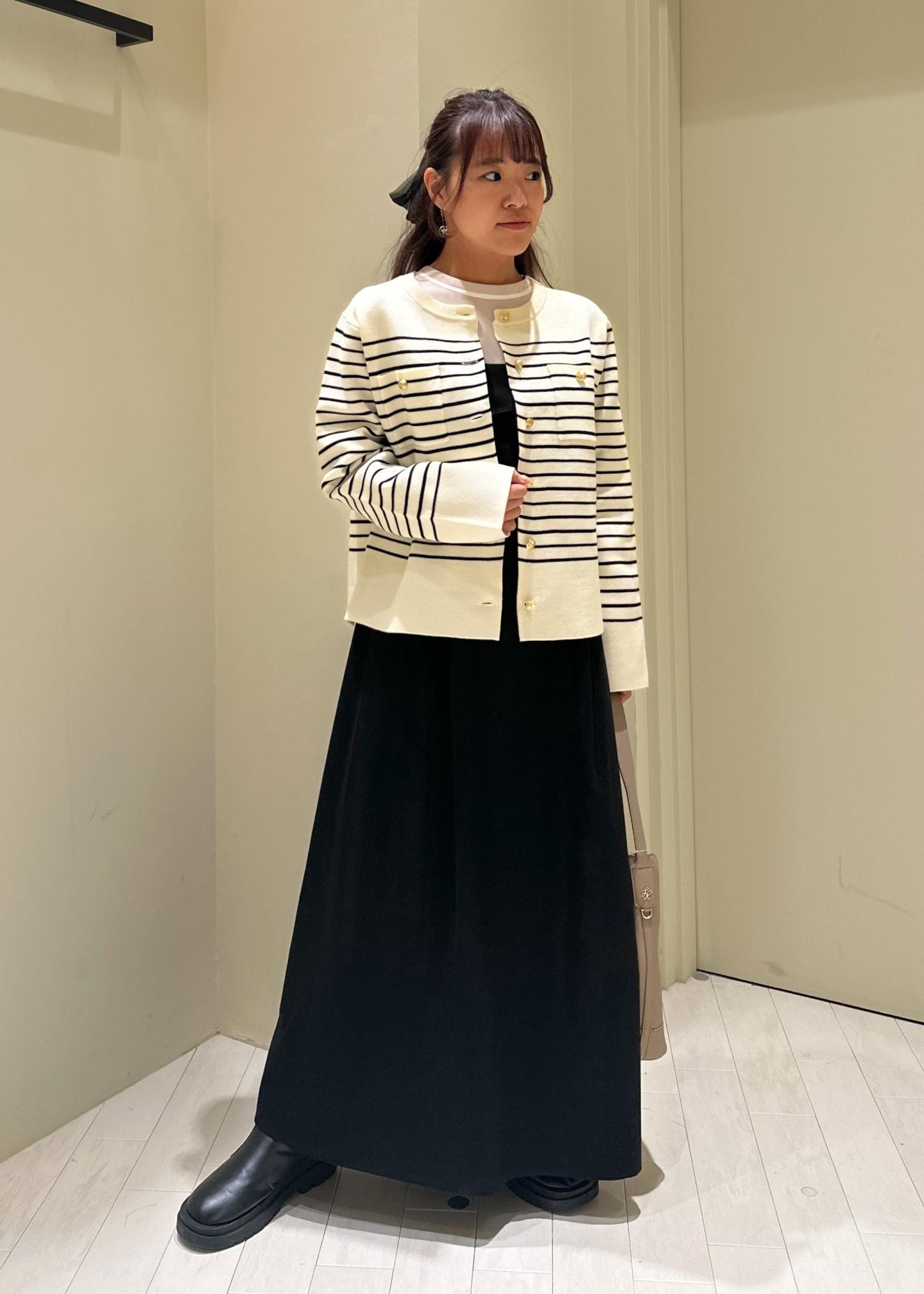 150センチ、骨格ウェーブの私がLサイズを着用するとこんな感じになります!