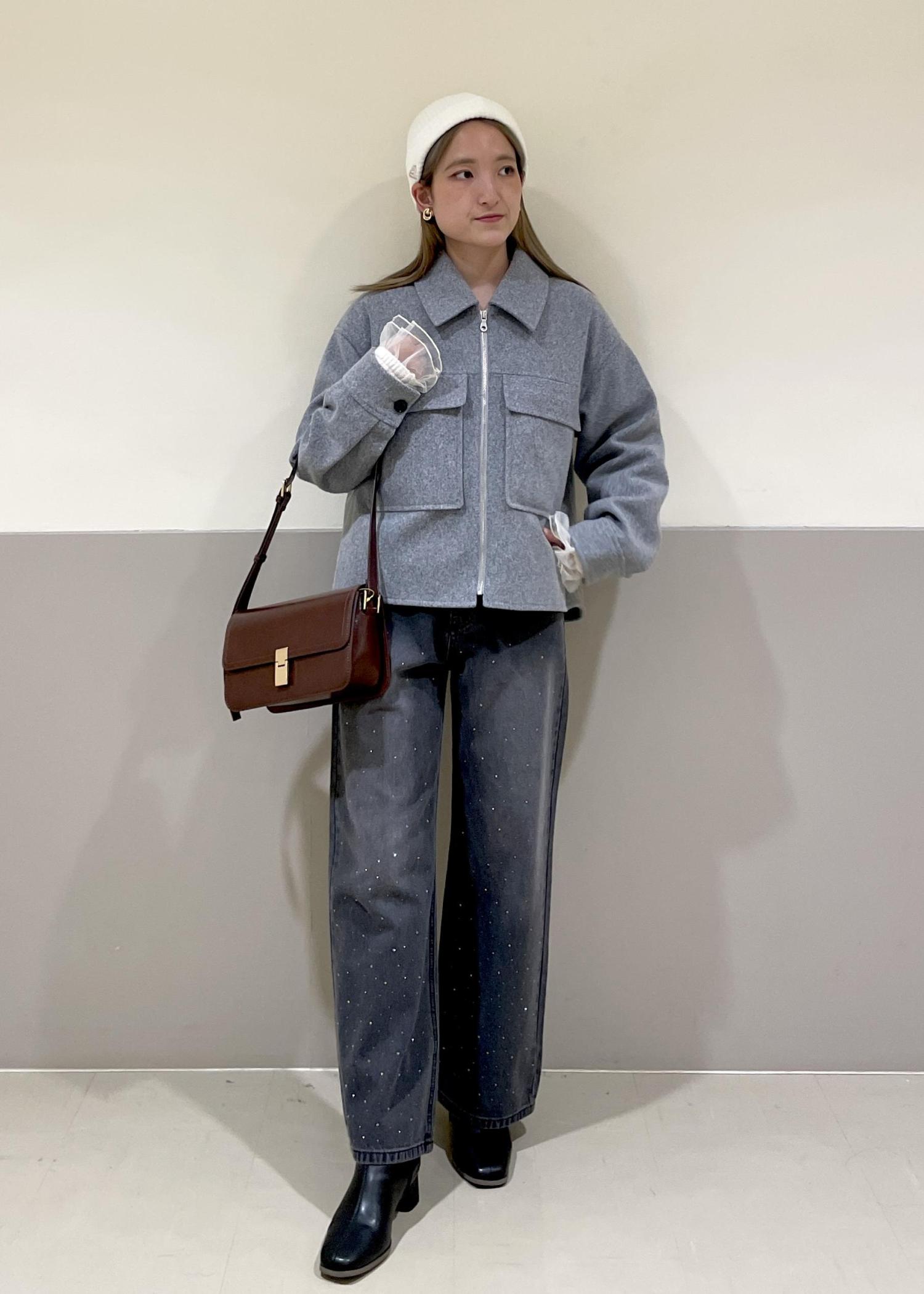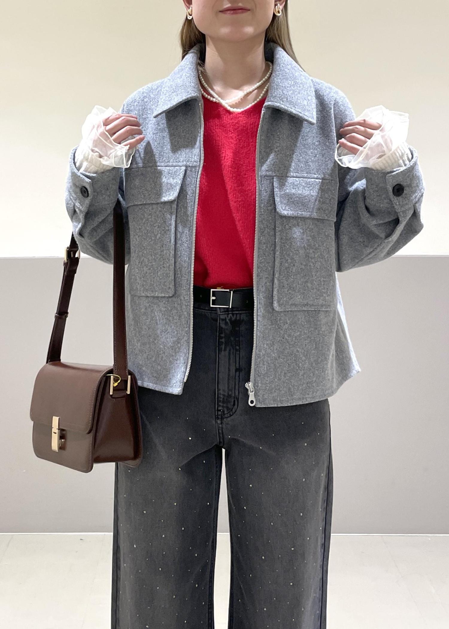 ROPÉ PICNICジャージーメルトンシリーズ ポケット付きジップブルゾン/リンクコーデライトグレー / F¥8,999レビュー161cmで腰骨下あたりの丈感。