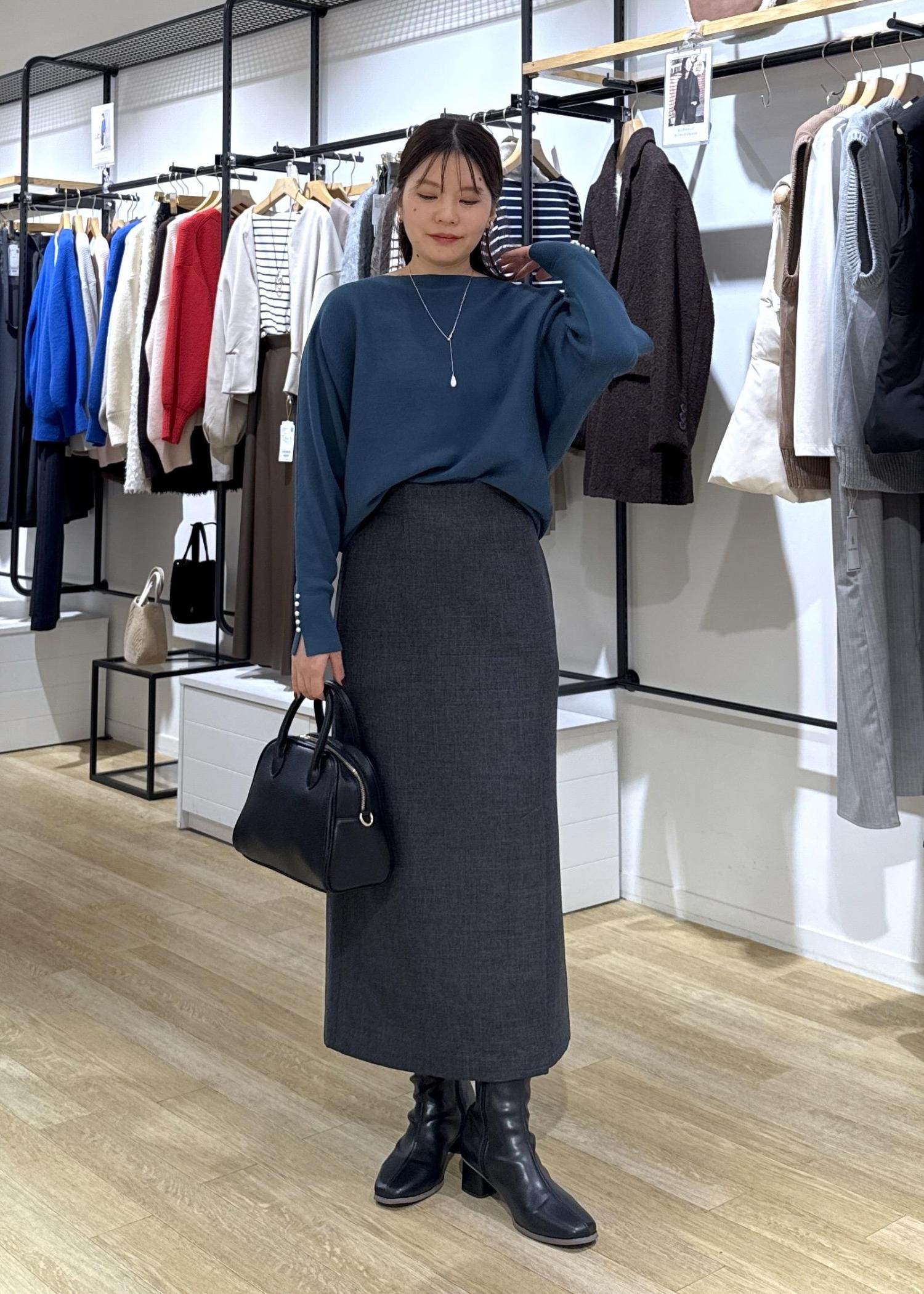 ロペピクニック定番人気のマシュマロ袖パールドルマンにお仕事から普段まで着回ししやすいスカートをあわせて秋冬のきれいめスカートコーデにしてみました!