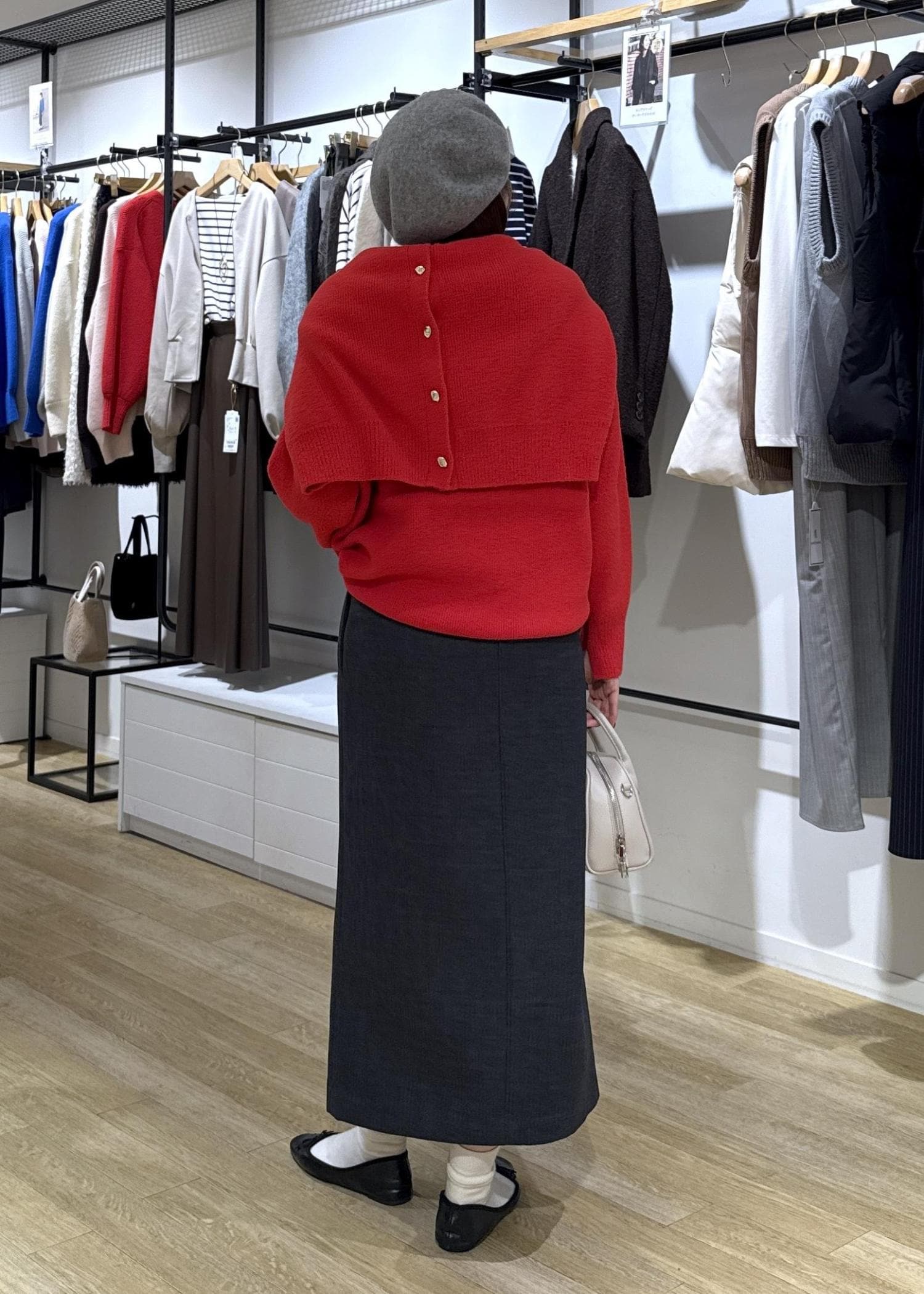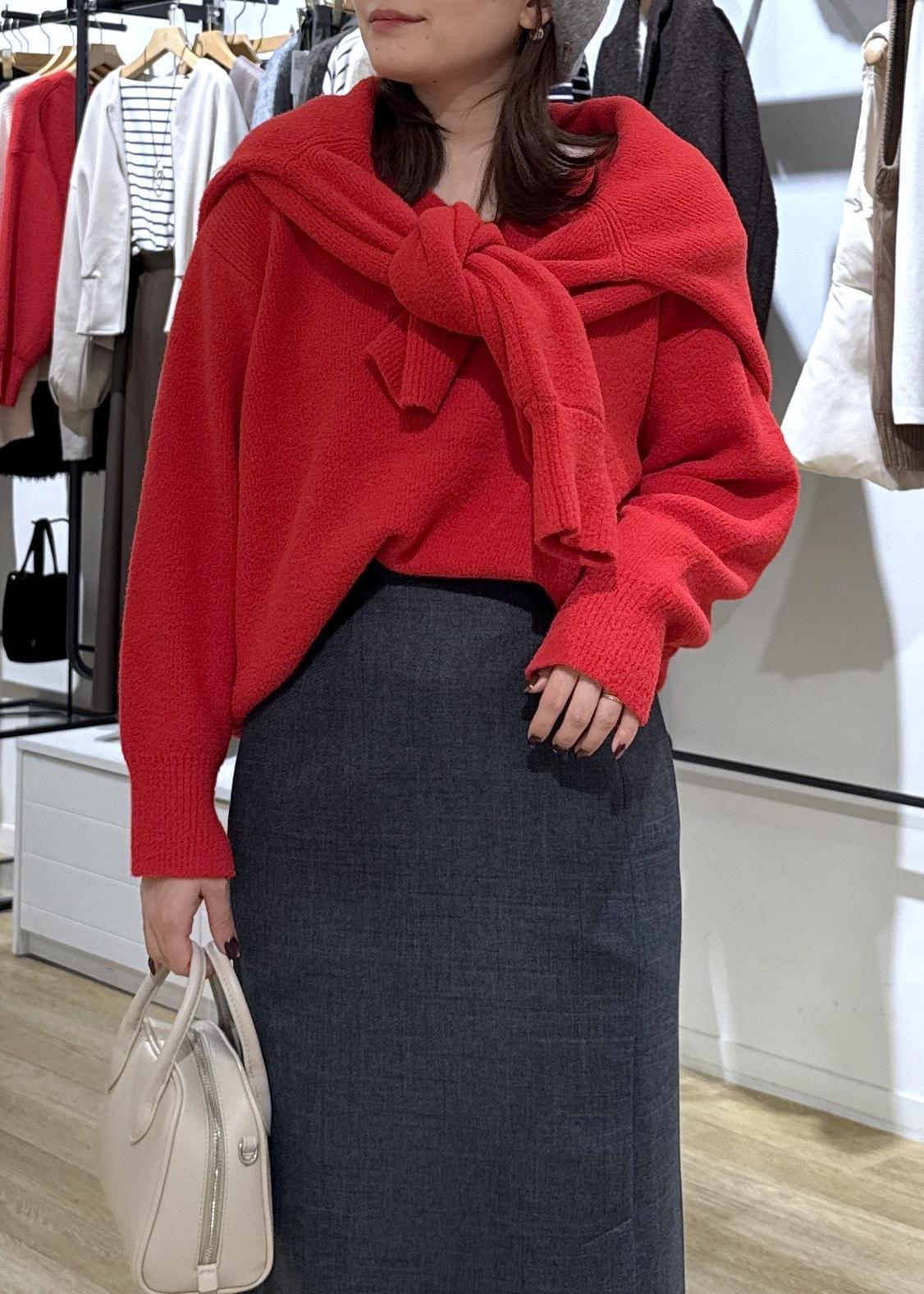 【紅葉からクリスマスまで】トレンド赤ニットのきれいめカジュアルコーデ