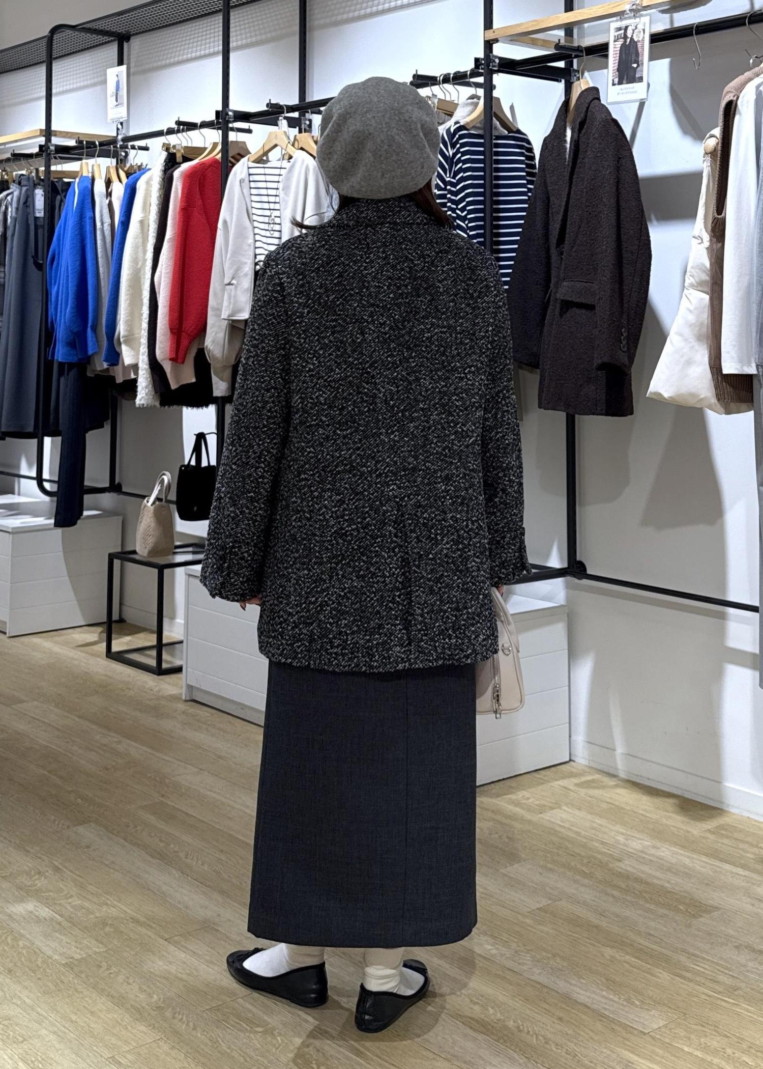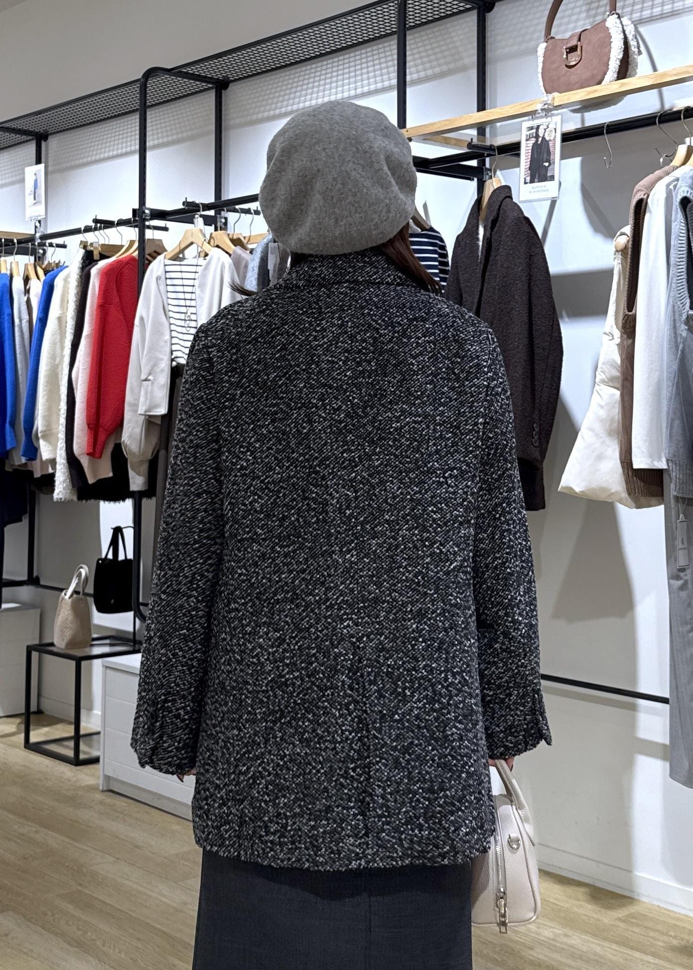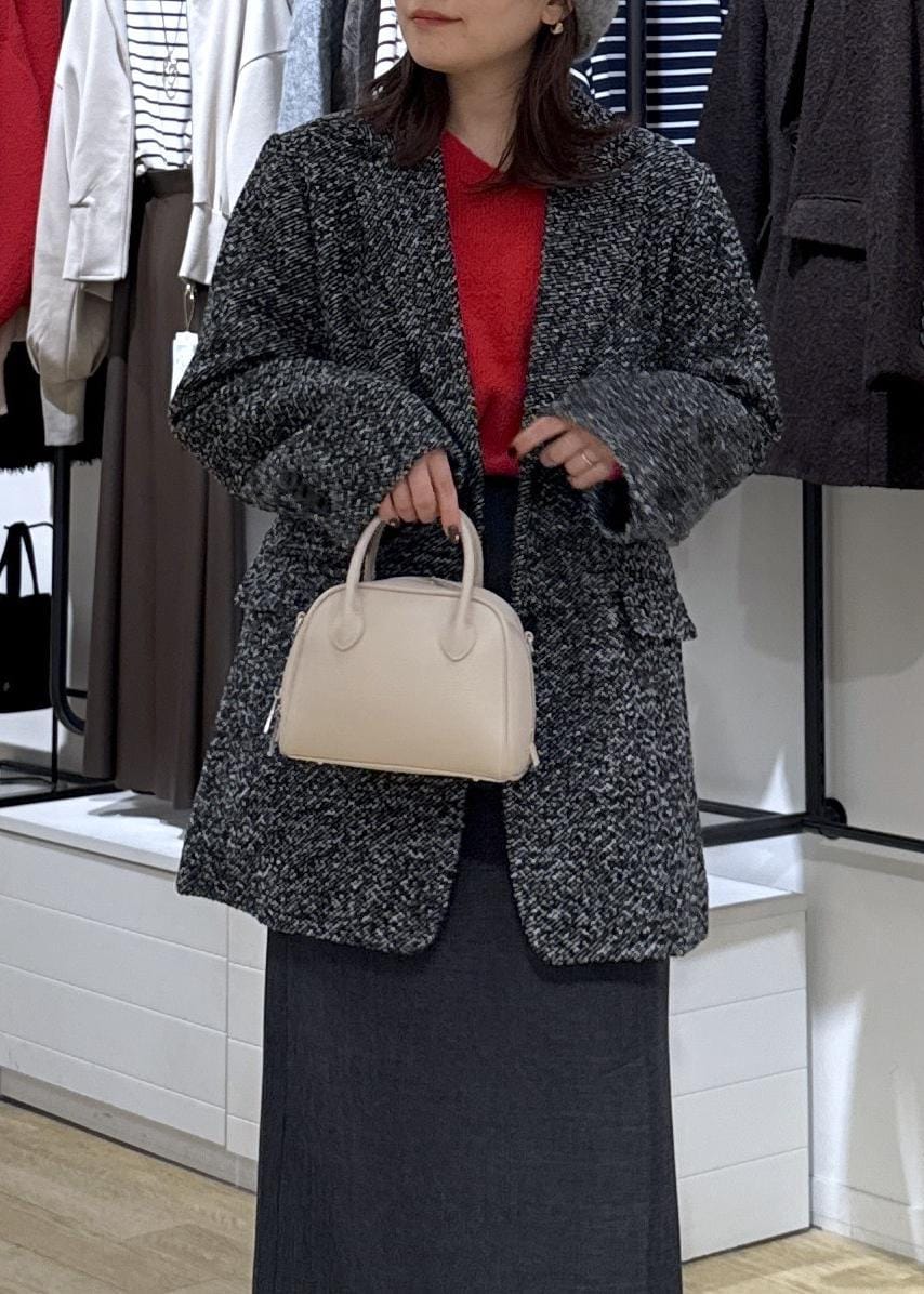 表地は凹凸感のないミックスカラーのツイード素材で、裏地が少し起毛がかった素材感です。
