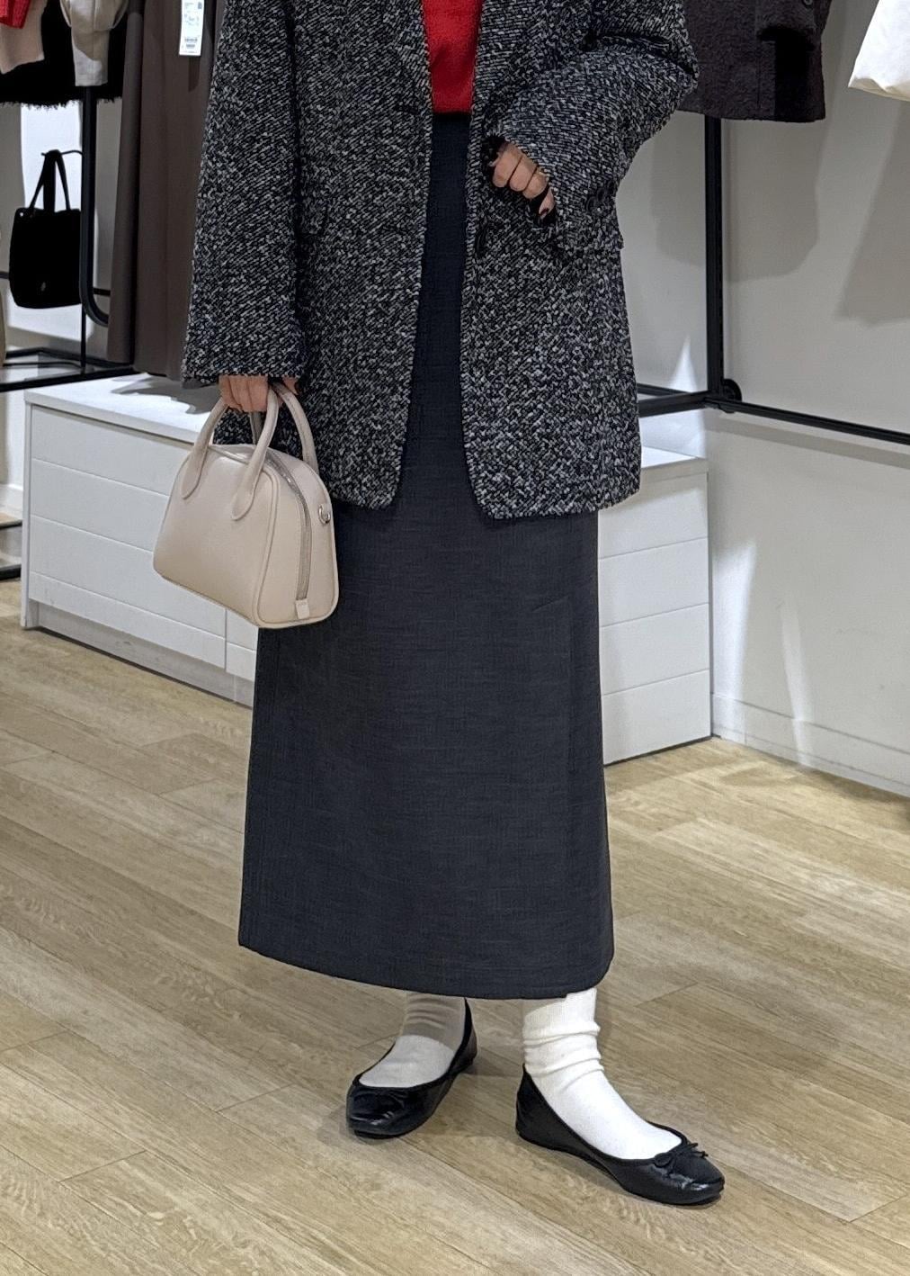 ROPÉ PICNICスリートーンツイードスカート/セットアップ対応チャコール / M¥4,994レビュー着丈が脛が隠れる長さで、Iラインで腰回りが細身のサイズ感だったのでSだと窮屈感があり、Mサイズでちょうどよかったです。伸縮性はありませんが、前スリットで足捌きもしやすく、ポケットもついてます。